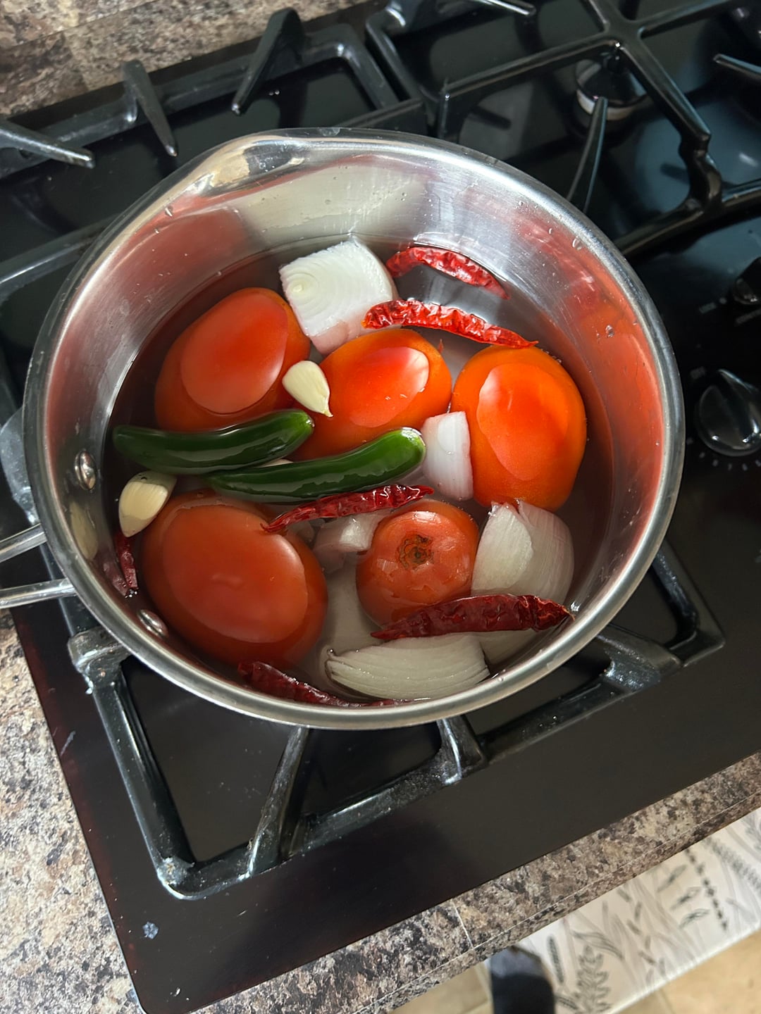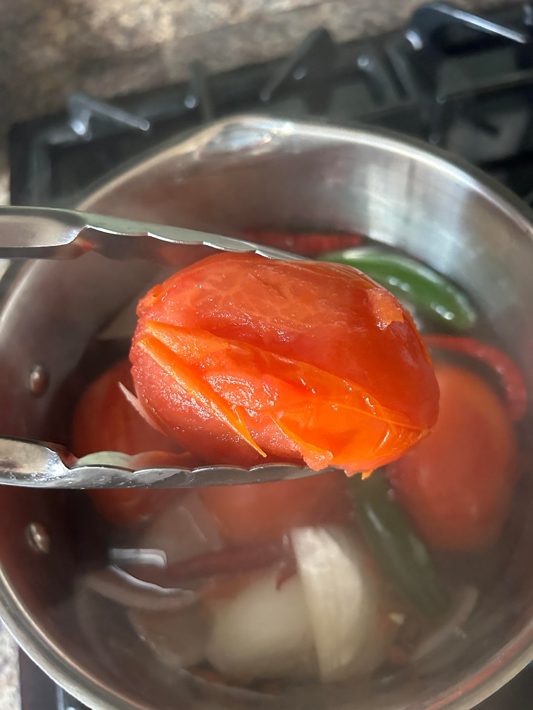 I like the garlic roasted / onion charred a little if I’m making a cooked salsa…but I normally broil or grill my veggies, not boil. Either way it would be a different flavor element to consider.