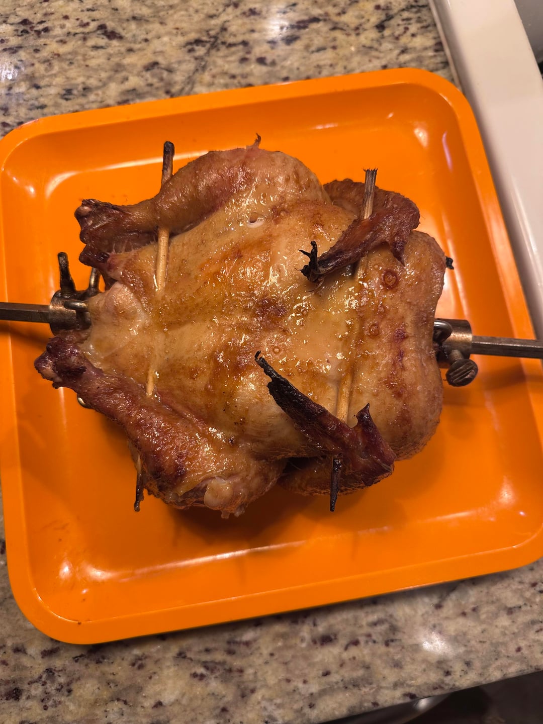 Could not find twine anywhere to tie my chicken so I had to improvise. Found some bamboo sticks to prevent the limbs from flopping around. Turns out, this is much easier than using twine and worked great! 10/10 would recommend!