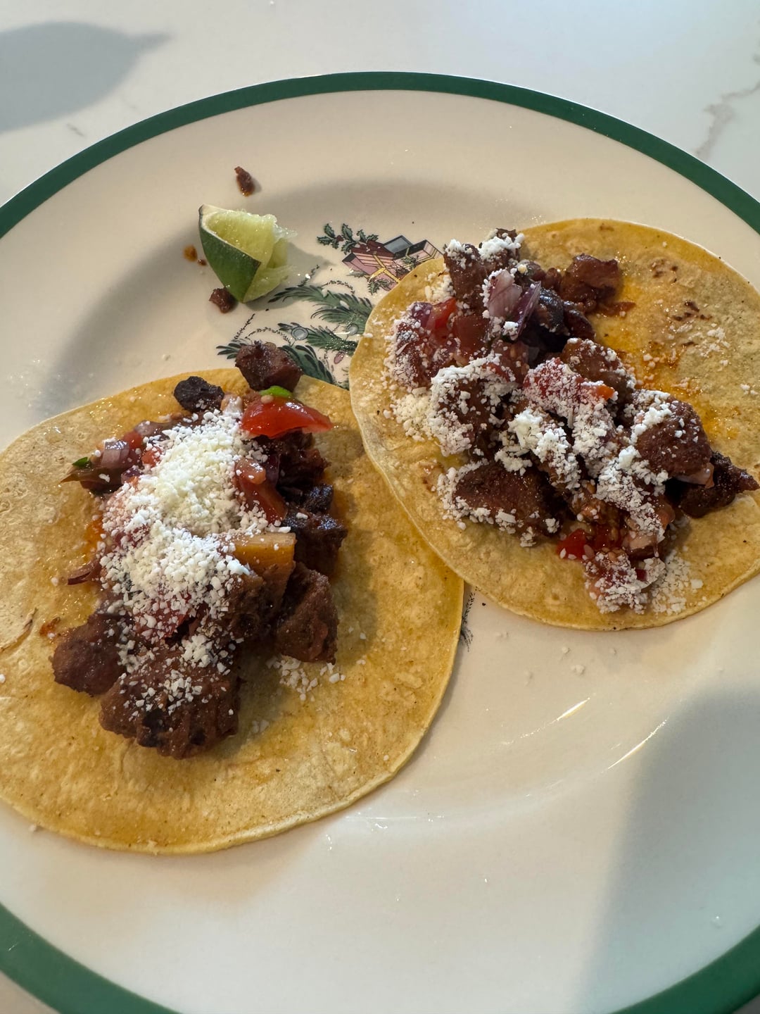 Ig_Met_Pet 14 hours ago I was horrified to see cheese on a taco al pastor, but looks good. To each their own.