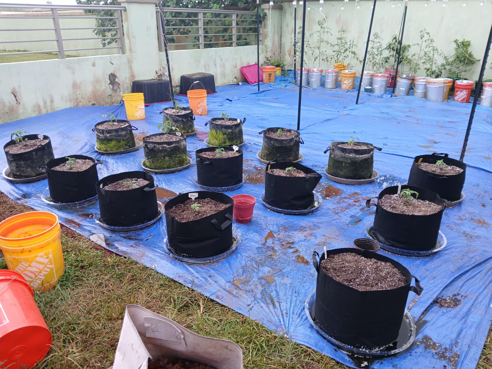 Growing conditions: 6-7.5 hours of sunlight (hopefully), rainy days are 85 degrees+, sunny days are in the mid 90s. Night temps are typically 78 degrees+. High humidity. Soil is 50/50 coco coir and perlite. Fertilized with Dr. Earth's organic fertilizer then each month, I add a tablespoon of Miracle Gro Slow release (these seem to kill plants if I'm not careful). Whenever I have extra Masterblend nutrient water (tomato formula), I fill the saucer with it. No irrigation system so I utilize saucers and it also helps prevent nutrient leaching. The saucers will keep water for a few days while they're young, but fully grown tomato plants seem to need a daily refill.