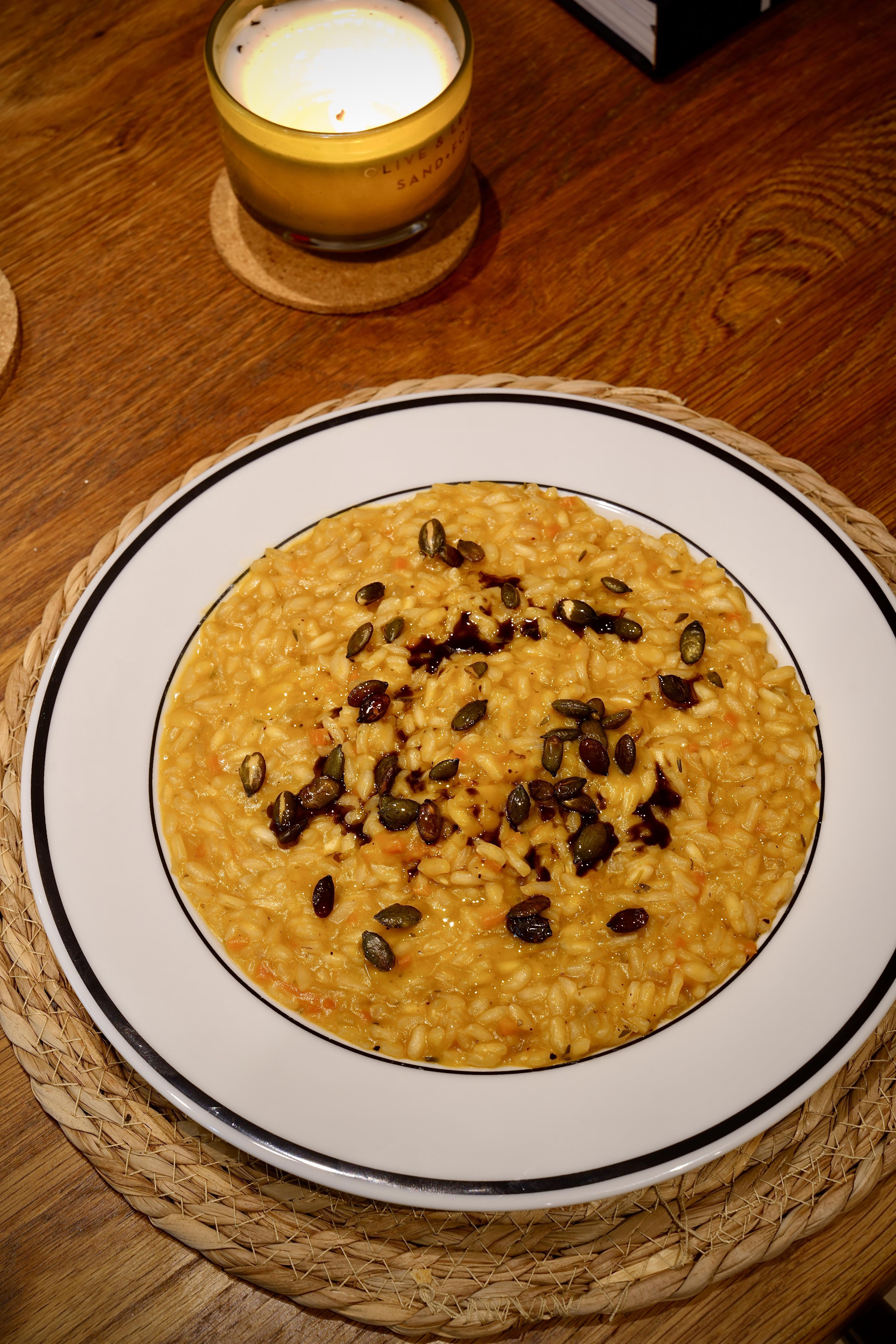 Tonight I made a pretty simple risotto using some veg stock, and puree of Crown Prince from the freezer.