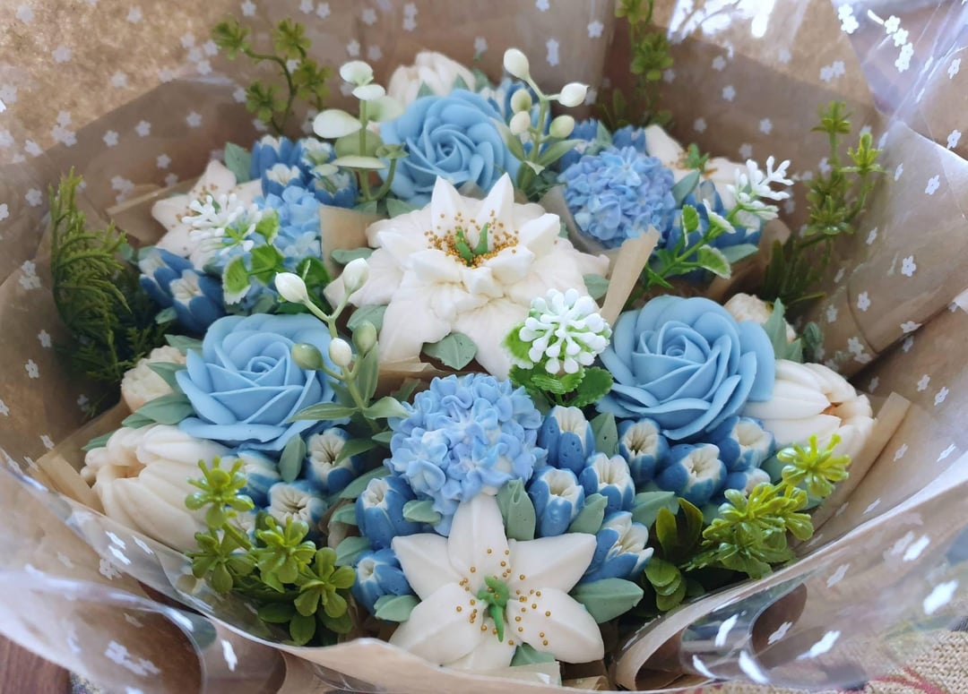 Buttercream blossoms in shades of blue 🩵