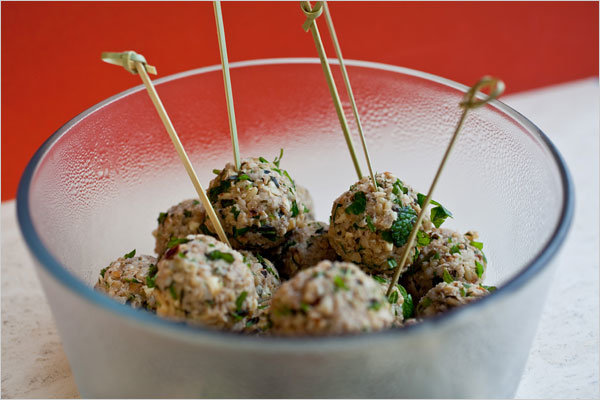These patties make a great destination for fine bulgur. Kibbeh (called kufteh in Persian and köfte in Turkish) are usually made with a mixture of ground meat and bulgur, but there are vegetarian versions as well. This mixture of bulgur and walnuts is pungent with garlic and fragrant with parsley and fresh mint. They make a nice appetizer.