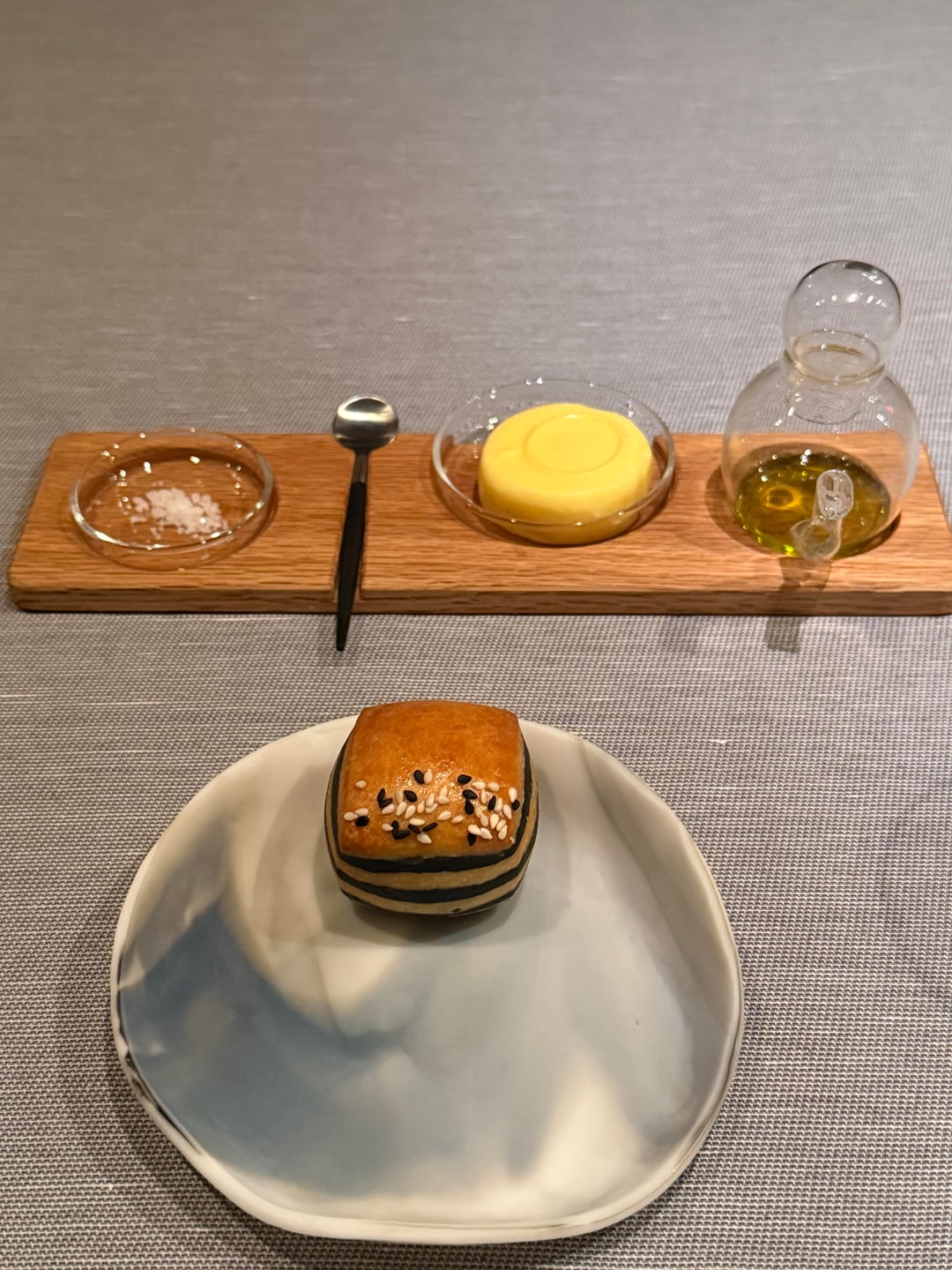 Bread service (pic 3): Nice selection of bread to choose from with nice classic European accompaniments. Personally I prefer one really special and perfected bread over a large selection, but they were all solid and having this many options is always fun. 6.5/10