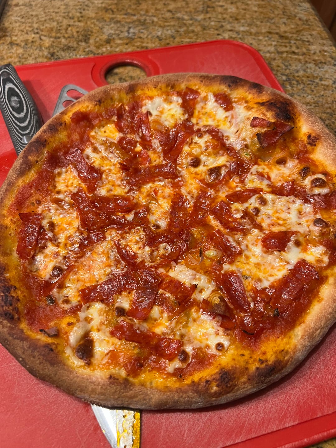 Cooked on a stone in the oven at max heat, blended San marzano tomatoes, fresh mozz, calabrese and shallotsby Lickitlikeyoulikeit1 3 Comments rawdawgexpress 3 months ago What is calabrese? Hot peppers? caruggs 3 months ago Shallots sound like a great topping MagazineDelicious151 3 months ago Looks like a good one