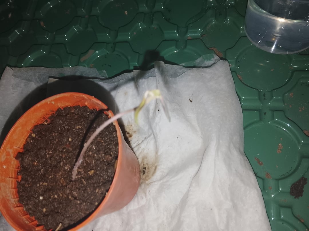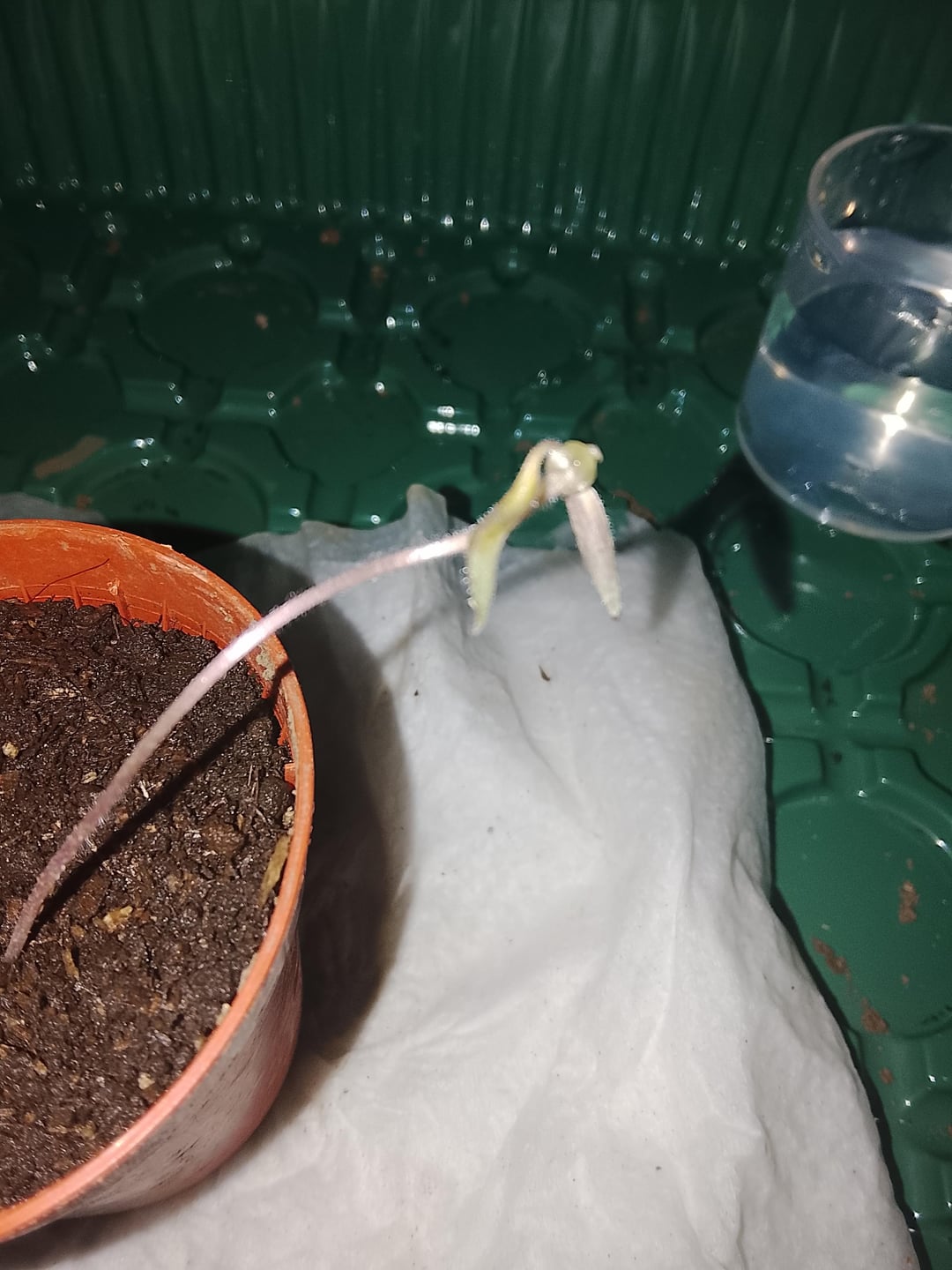 Did you cover it up with the paper towel when potted? Looks like when I grow beansprouts to eat.