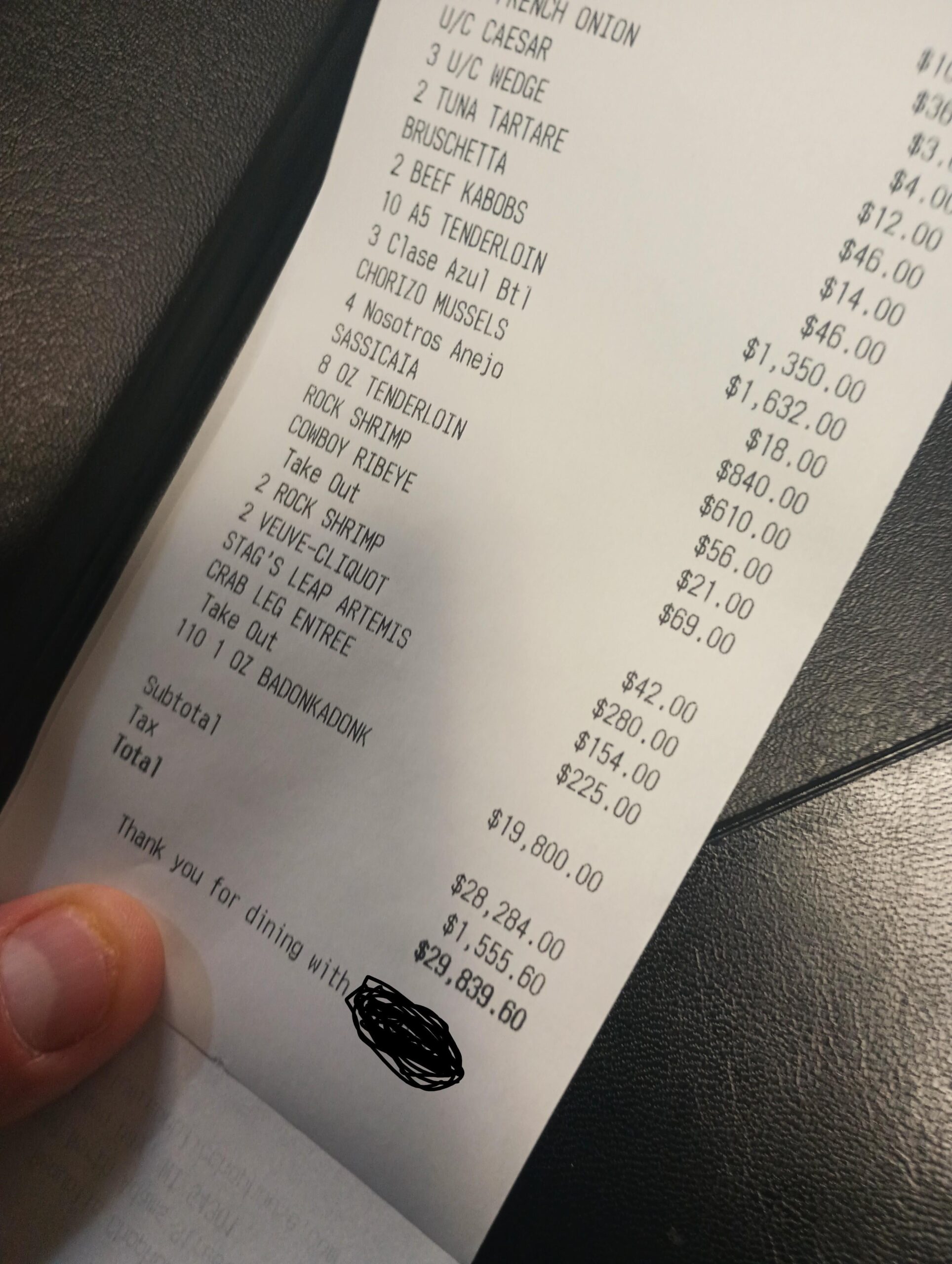 I just want to express my love for the souls who ate a $1700 dinner and still needed something to take home.