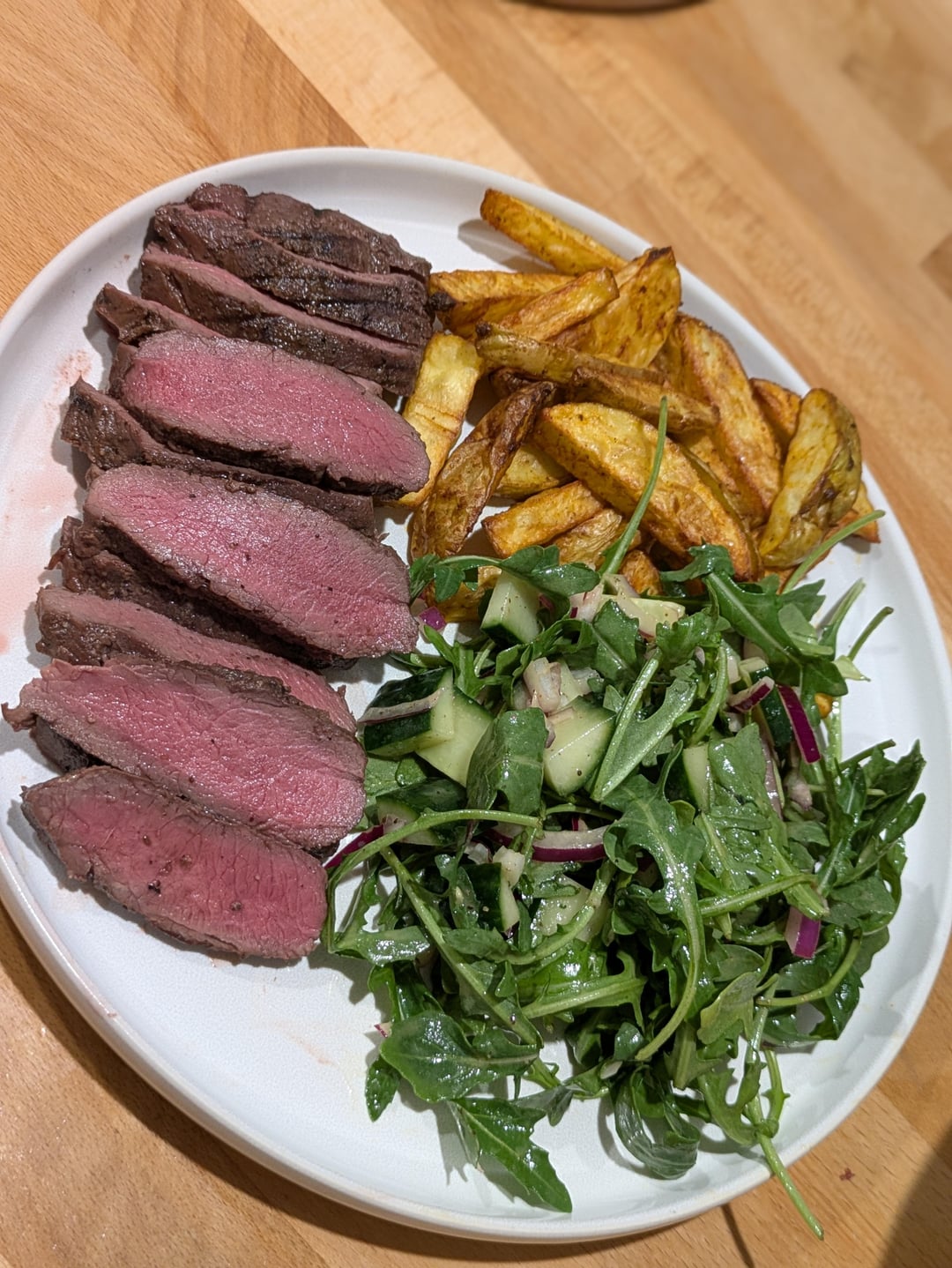 This venison backstrap was from a recent hunt and was seared briefly after cooking at 55c for 50 mins.