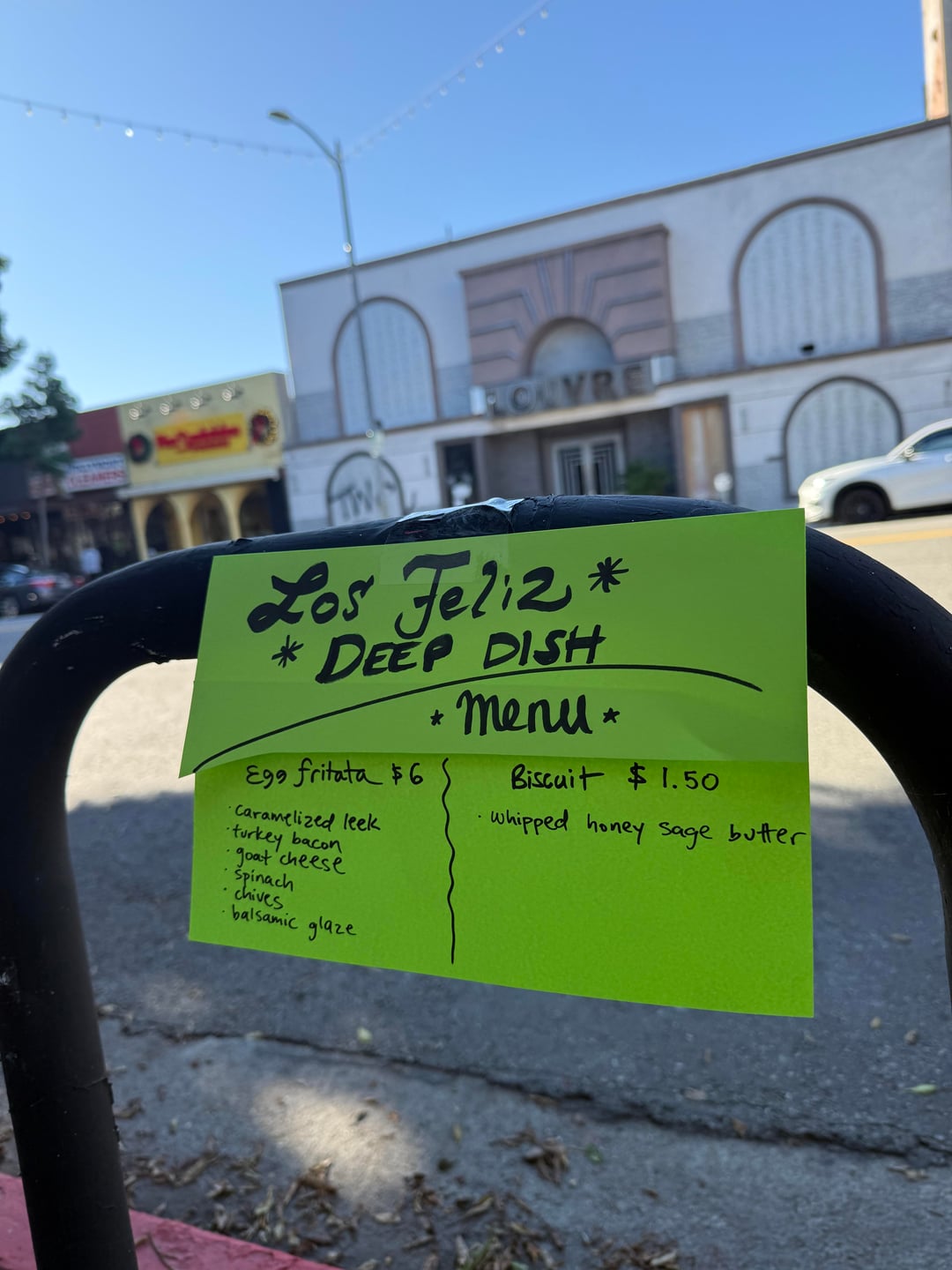 hi! I am selling egg frittata ($6) and biscuits ($1.50) from noon-3pm today (12/28) in los feliz 🙂 just sold another of these trays so I have one left. I am between Melbourne and Kingswell on Vermont avenueby PugetSoundRecords Dining and Cooking