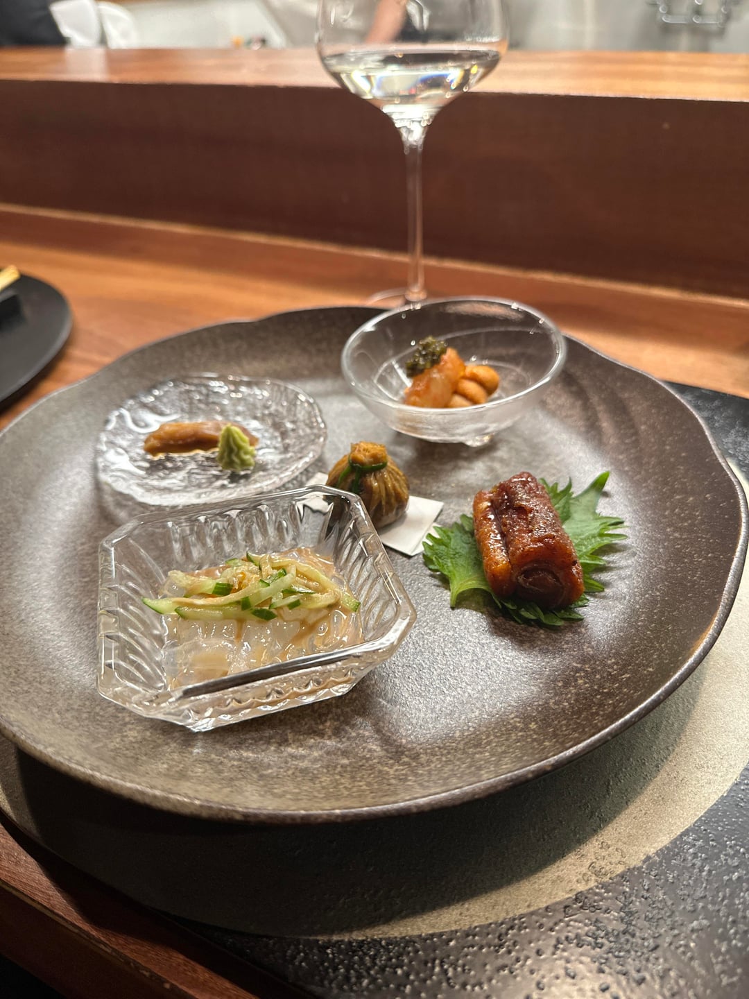That day was quite fun – everyone ended up sharing a glass of what they brought – my guest brought a few bottles of nice wine which was kind of him, I brought three sake (Kuheiji HiNoKishi, Kaze No Mori Alpha 3 and Jikon Tokubetsu) and other diners had brought their own wines.