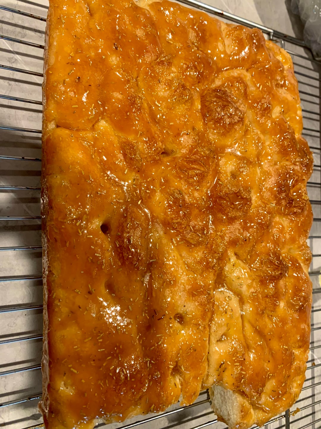Actual best bread I’ve had in my life — honey focaccia with a crispy honey rosemary glaze