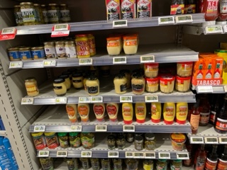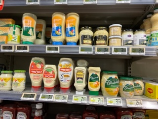 Mustard is back on grocery shelves and shoppers have heaved a collective sigh of relief as they stock up for the next shortage. For some inexplicable reason the French do not use white wine vinegar, only red wine vinegar, so a trip to Geoffrey’s, the very British grocery store and decades long fixture was necessary if one wanted white wine vinegar and it was the go to place for Hellmann’s mayonnaise as the Brits like mayo, especially Hellmann’s, on their fries or “chips”, not ketchup. Never in my life have I seen so much mayonnaise in one place: cases of 24 jars stacked hip high and more on the groaning shelves. Then came Brexit.