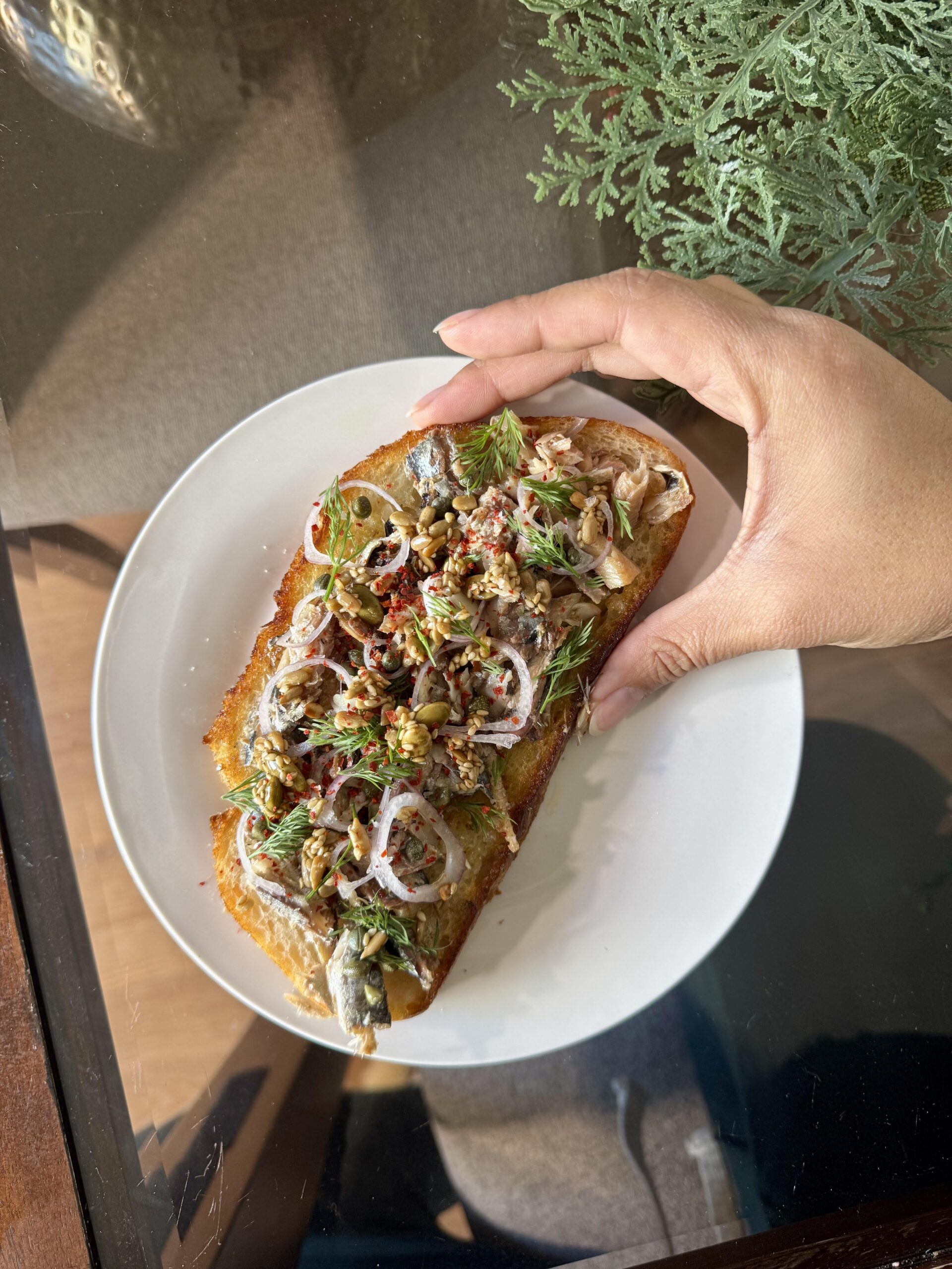 This morning’s consisted of sourdough toasted in olive oil, Fishwife sardines in preserved lemon, capers, thinly sliced shallots, fresh dill, Trader Joe’s salsa macha, and Maldon smoked flaky salt. Yum! by mic-lemon 5 Comments Fuzzy_Welcome8348 4 days ago Looks fantastic! Lezleedee2 4 days ago That looks so good! ulikaiser8 4 days ago yes I will add this to my breakfast routine shhimhuntingrabbits 4 days ago Looks like some really excellent placement. Building a truly great sandwich/loaded toast is an art. Yours looks delicious mander1555 4 days ago wow! great work 🙂