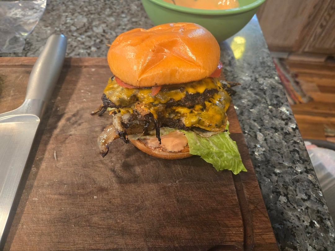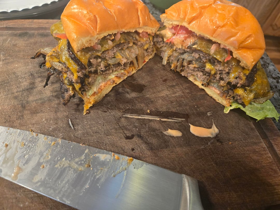 What weight patties did you use? Not a critique but they seemed a little thick for a traditional smash. You can smash those suckers even more to get them almost lacy on the edges. Real good crispies on the edge then haha