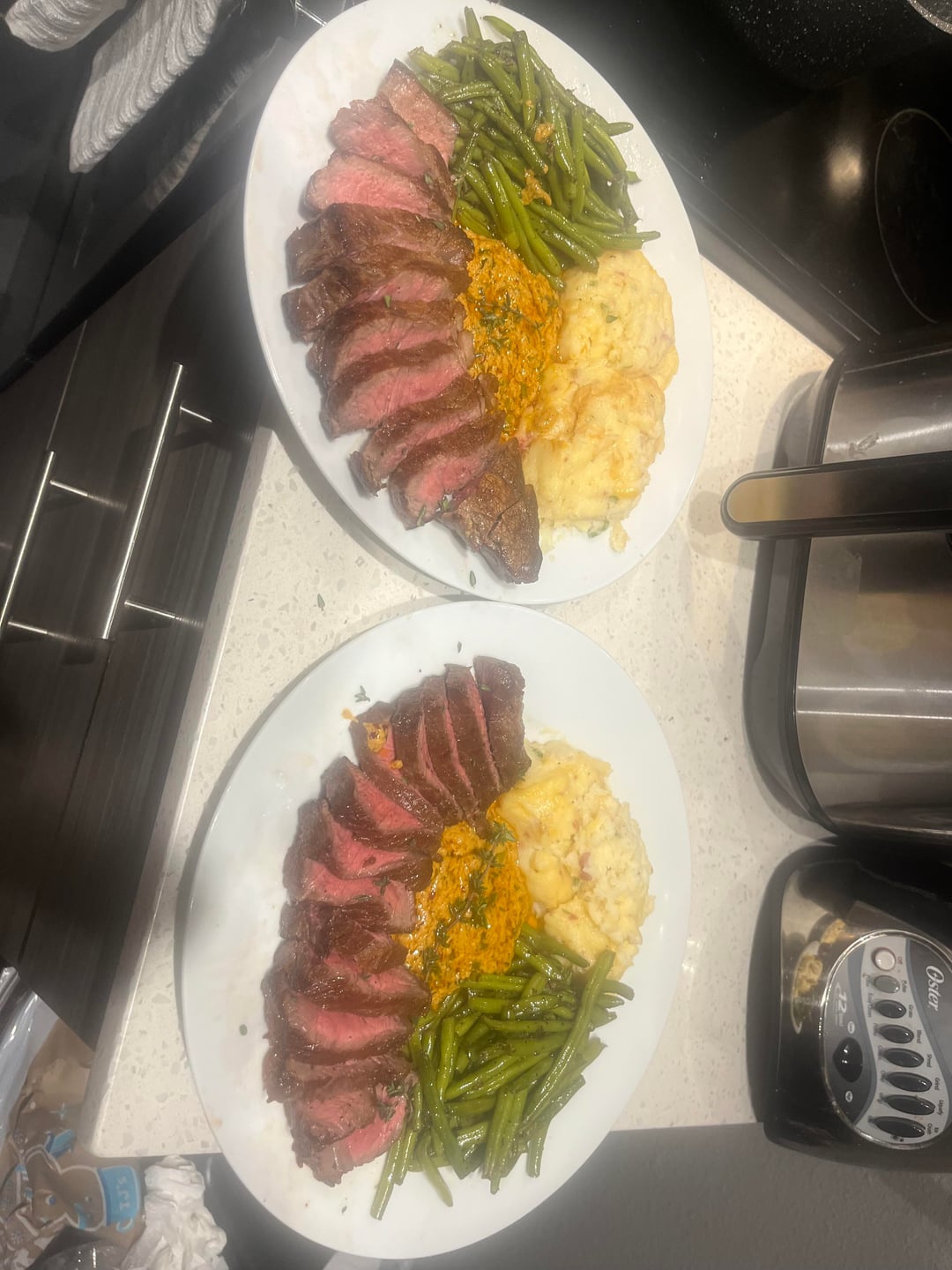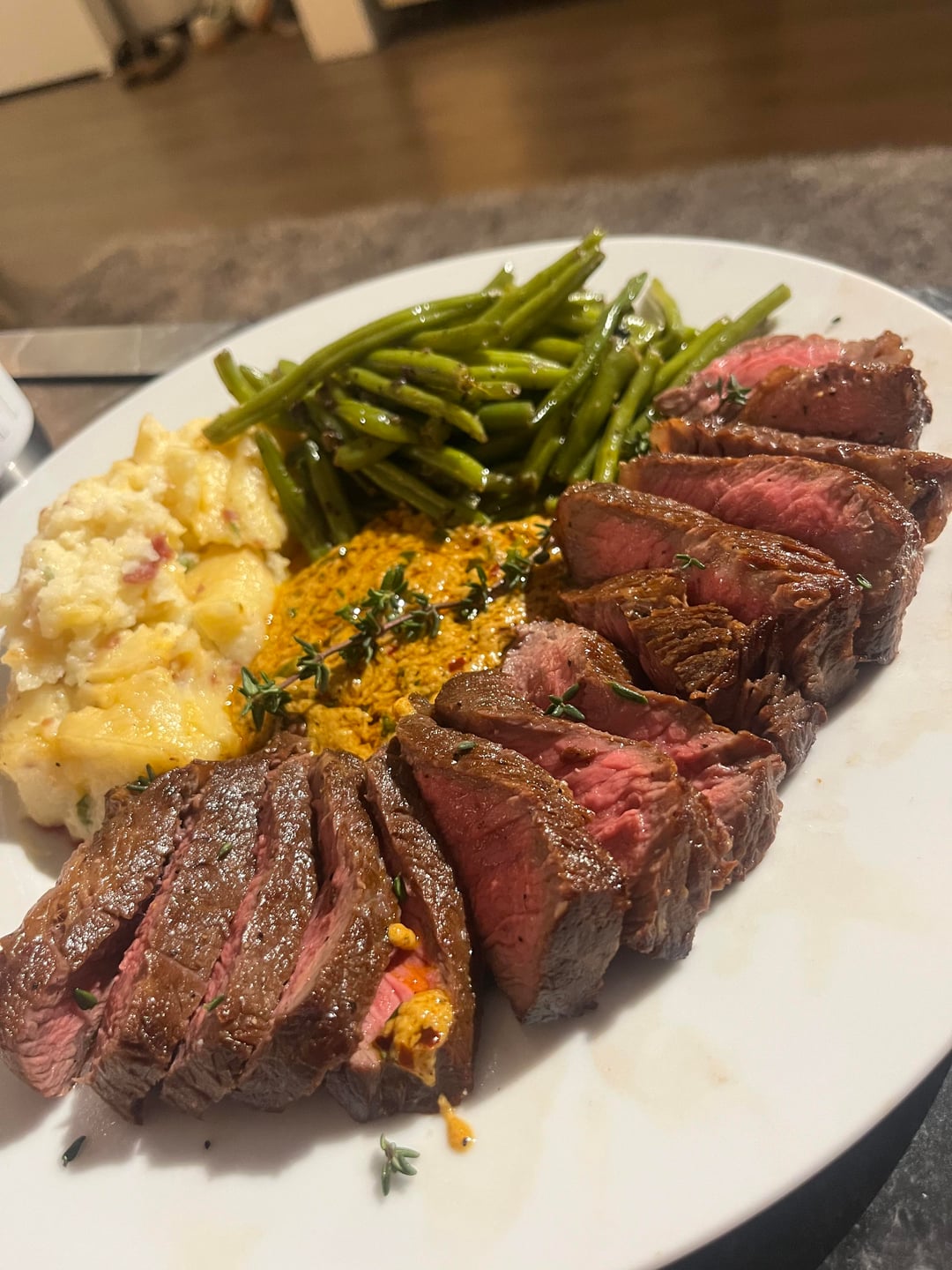 Need to work on a better crust and getting rid of that gray band… was going for more of a rare than medium. However I think it turned out OK 🙂by bladeoflove 10 Comments Tonedef22 2 weeks ago Yes. That is all 🤣 Substantial-Annual95 2 weeks ago I busted Ok_Farm_142 2 weeks ago well done Punch_Your_Facehole 2 weeks ago Looks great! Curious why you precut both steaks? TvTacosTakingNaps 2 weeks ago I also prefer more of a crust but it still looks absolutely delicious!! dekkact 2 weeks ago Ya done good Cute_Doughnut_7739 2 weeks ago Yummm! dylans4skin 2 weeks ago DUDE. This looks so nummy. This makes me so hungyyyyyyyy Brilliant-Bluejay-52 2 weeks ago Awfully done. Please send it to me for further review ScorpRex 2 weeks ago What’s going on in the middle of the plate?