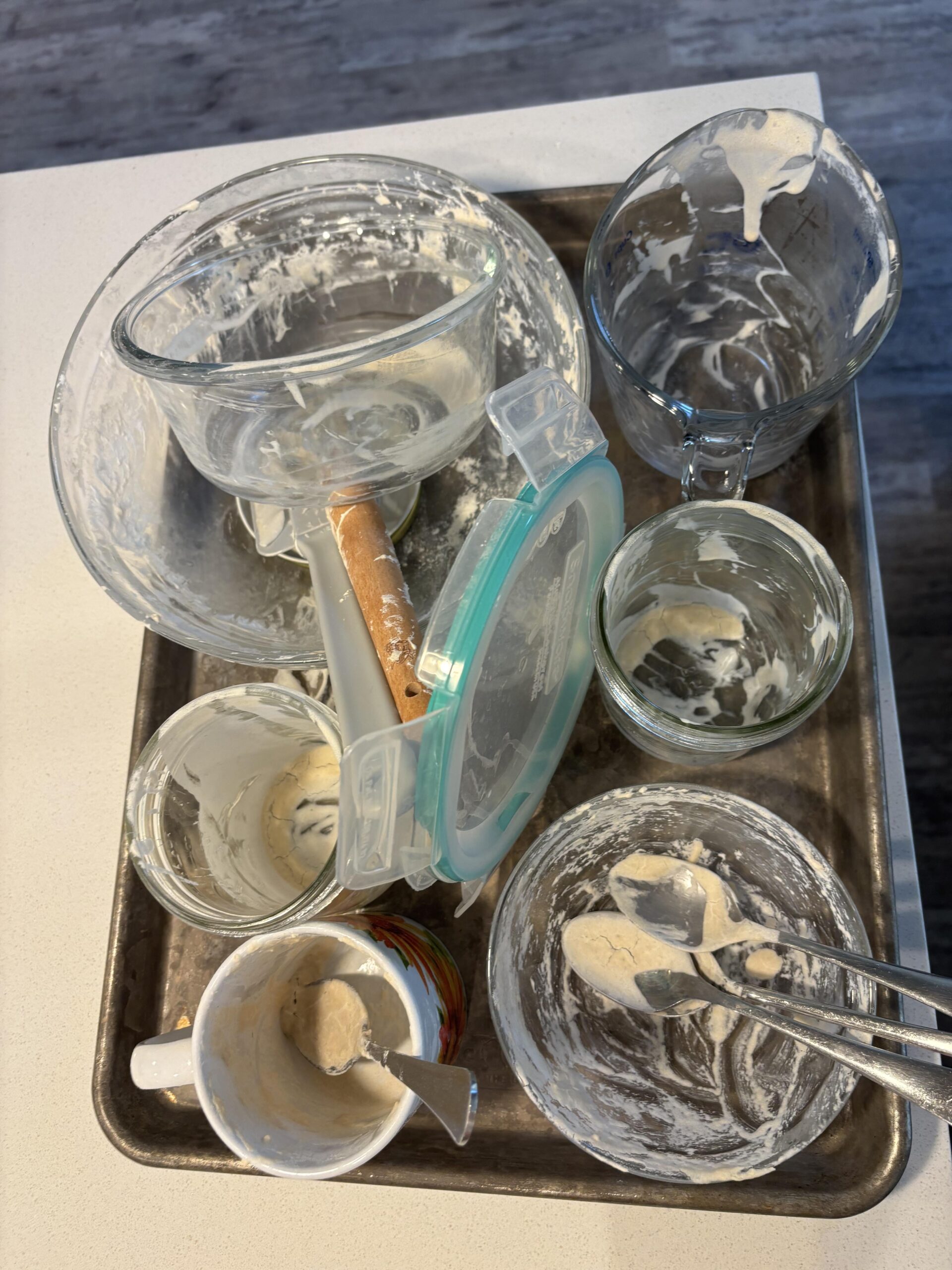 This is the worst part of sourdough baking. I spend more time cleaning and scrubbing starter off all the tools than actually making the bread!