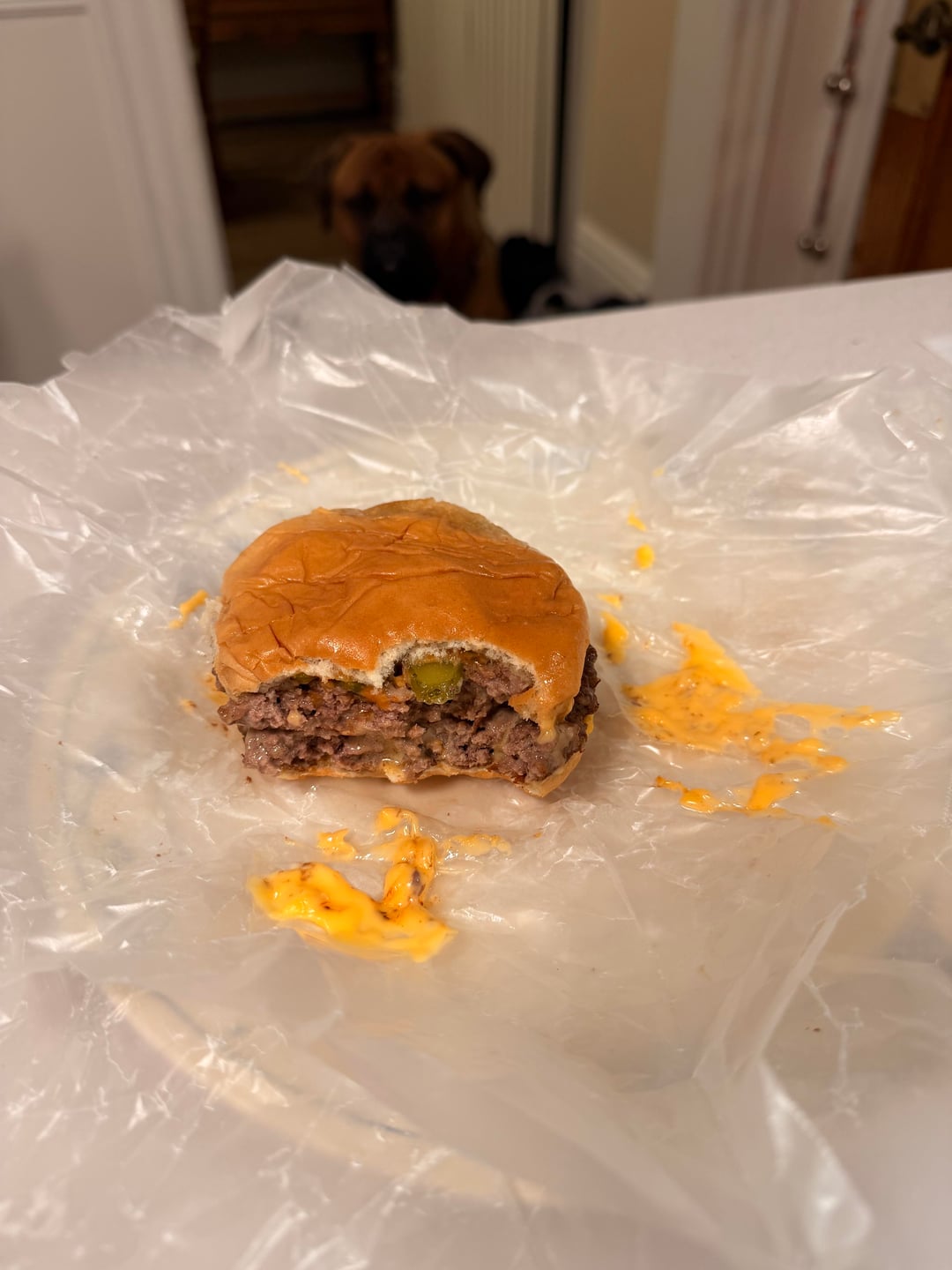 Looks thick, meaty and cheesy. That doggo would like to confirm.