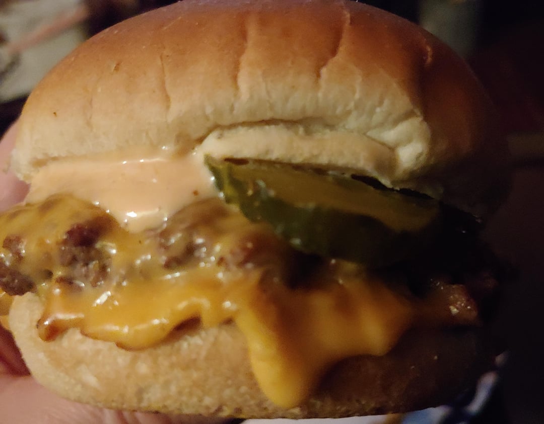 Meat, cheese, pickle, thousand island. Simple but delicious!