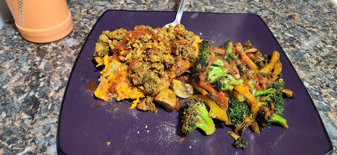 1 serving of home made mince pork dish (pork shoulder butt fat drained, carrot, mushrooms, scallions, seasonings)