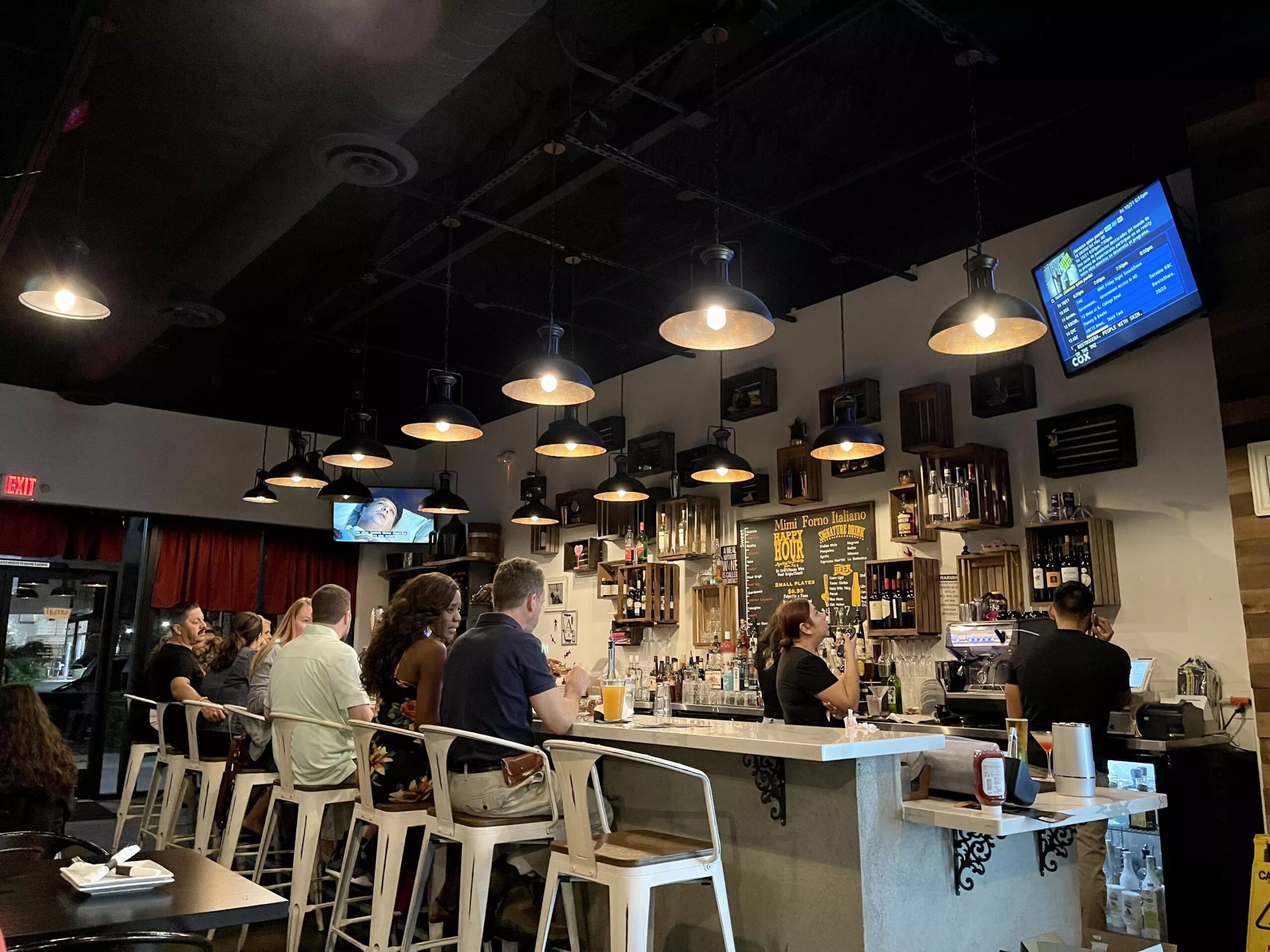 The small dining room at Mimi Forno Italiano is busy but cozy.