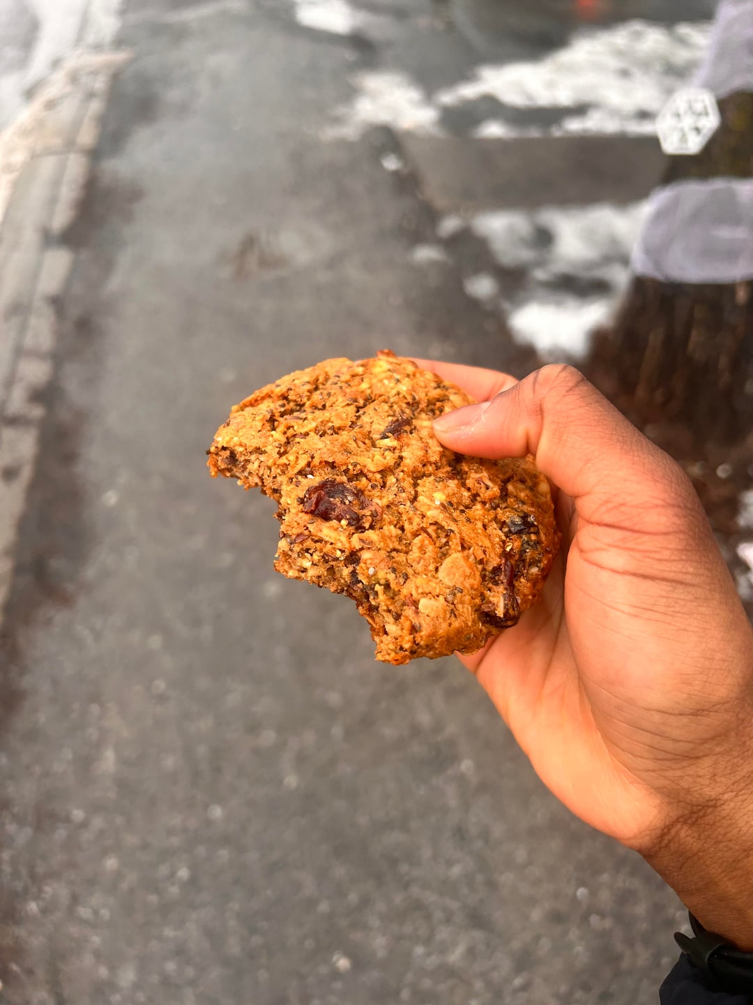 It’s a “Power cookie” with oats, various seeds and dried fruits. It was quite dense. I’m guessing ~350-400 cals. by amateurlurker300 2 Comments moontari 2 weeks ago I’d say your estimate is right! About 350 Decent-Ability-4784 2 weeks ago If you’re wondering how counting macros is going.. I swore the first photo was just a hunk of fried chicken 🤤