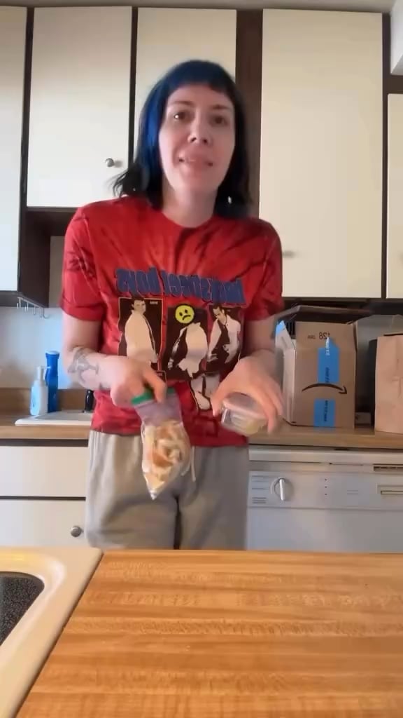 They way she yonk the food from the fridge like a hungry goblin is killing me.
