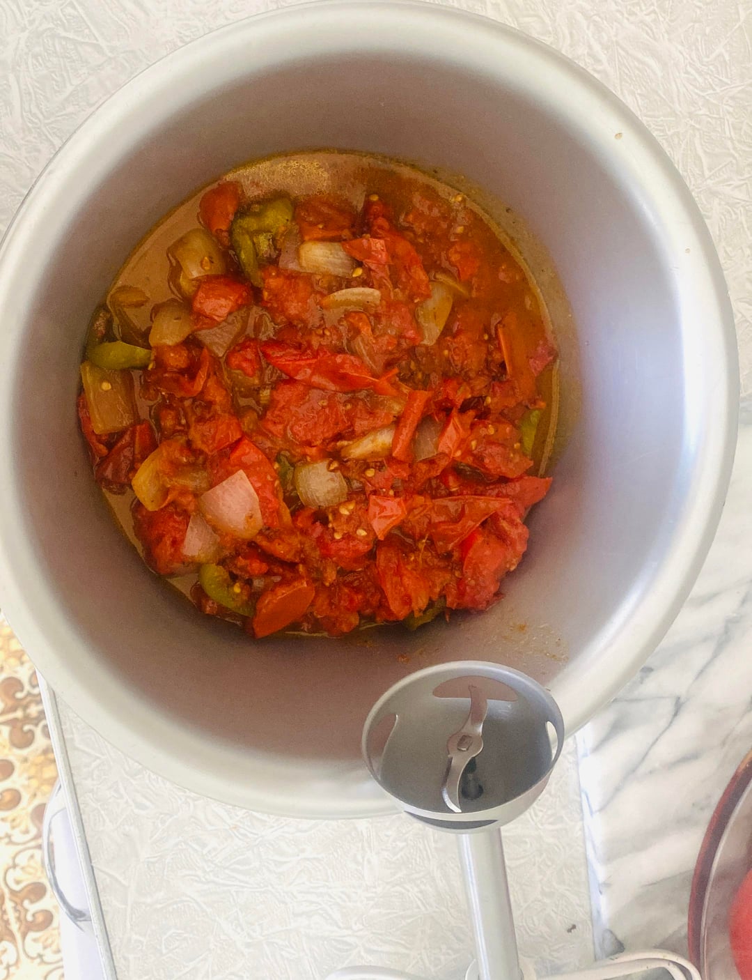 Step 3, toss it all in a bowl and hand blend, no added liquids as you want it a paste consistency.