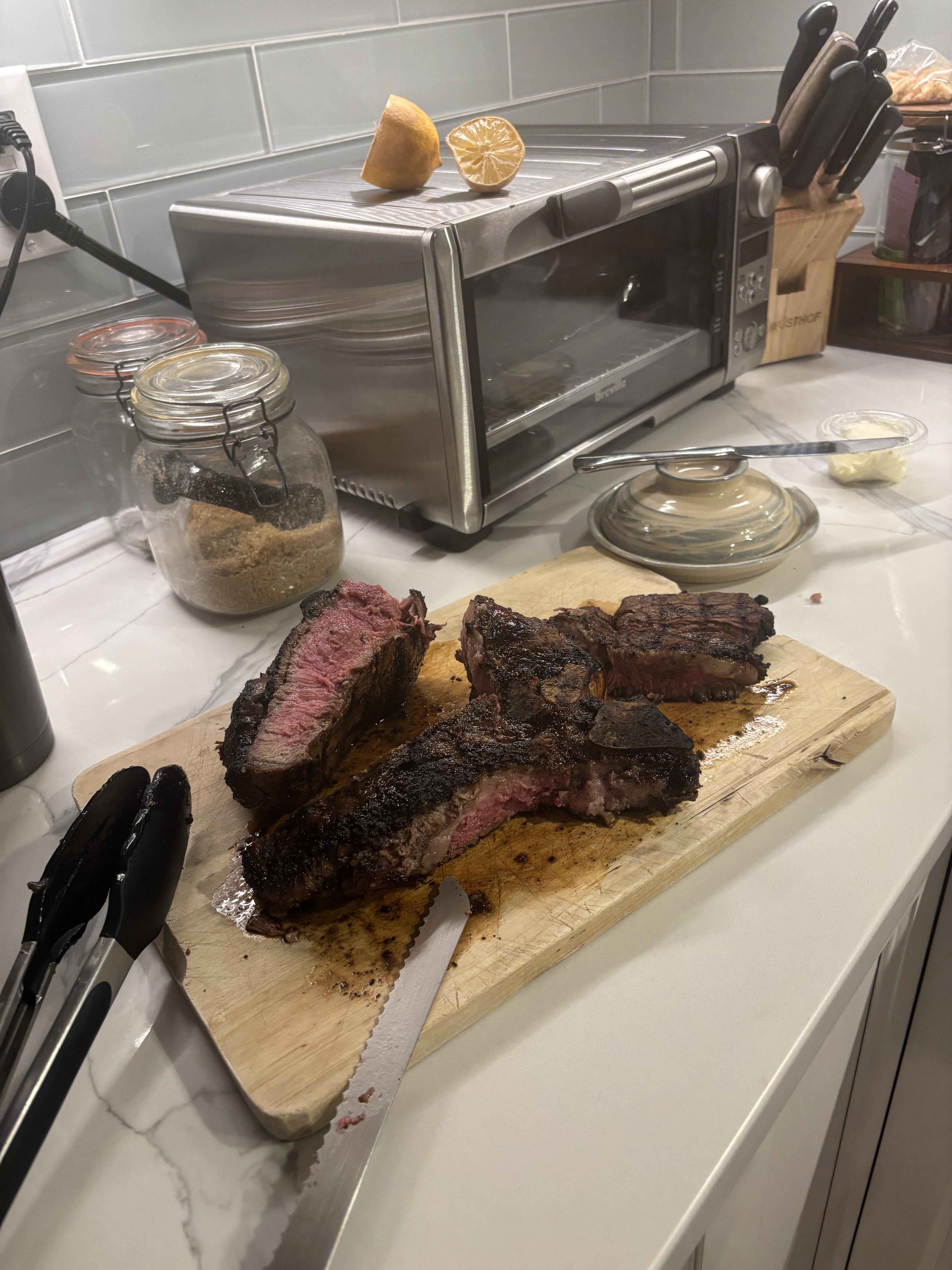 Steak charred black, cut with a bread knife, OP thinking he ate a sirloin…