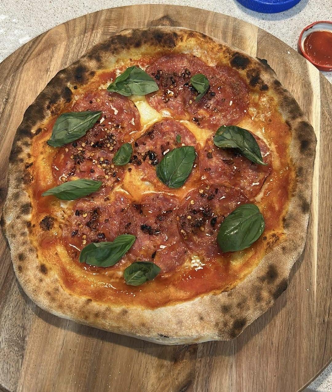 Passata sauceFresh mozzarellaHot salamiChilli flakes Hot chilli honeyFresh basilby froffi Dining and Cooking