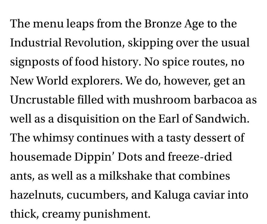 This food writer is having fun 😂💀 the first couple slides remind me of Joe Abercrombie (dripping scathing, sardonic observations, for the fantasy genre uninitiated)