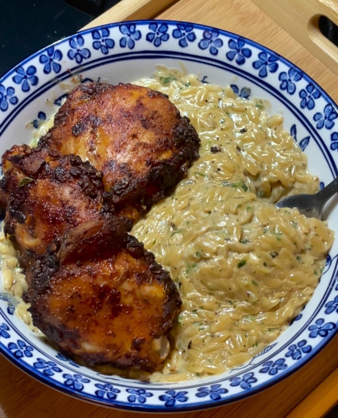 Made creamy orzo with juicy chicken thighs yesterday and my family are asking for more today😊by ILOVEEEFOODD 10 Comments kakarot66666 2 days ago What kind of sauce did you use for the pasta? Old_Ben24 1 day ago That looks incredible. What rub/marinade did you use for the chicken? Tyroni79 1 day ago If the family is already asking for it again, that says everything. AimeeMonkeyBlue 1 day ago Can we get a recipe for both? Looks divine! Starlight319 1 day ago Recipe full send please! This looks delicious. Passiko 1 day ago Looking good Bake_Bike-9456 1 day ago this looks good, particularly the orzo (but i’m biased) IdeaSignificant6887 1 day ago Yummy pksurf 1 day ago What’s the recipe robgriff69 1 day ago DM recipe for orzo please I bought some out of curiosity but not sure how best to use it