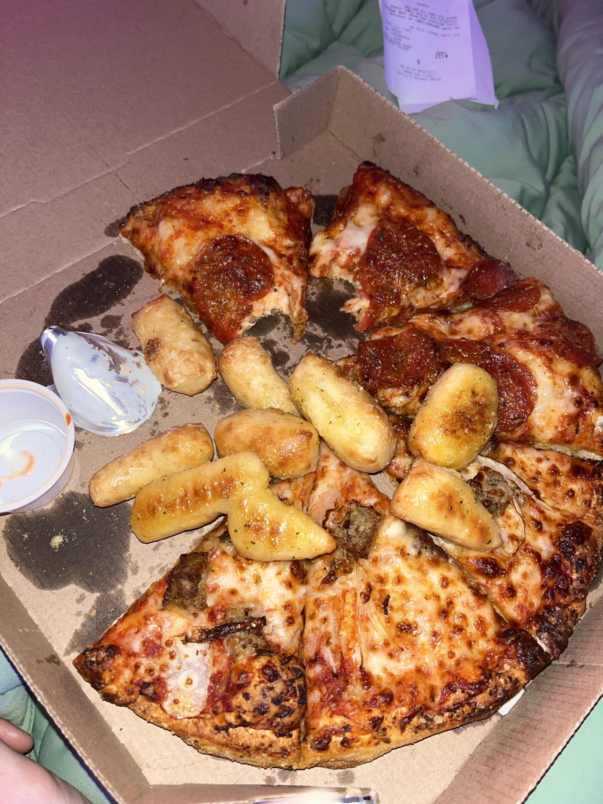 Red flag?? my boyfriend ordered a sausage pizza i ordered pepperoni, he liked my pizza better and i said he could have some of mine… he had two slices and then he then takes two bites out of two different slices of pizza???