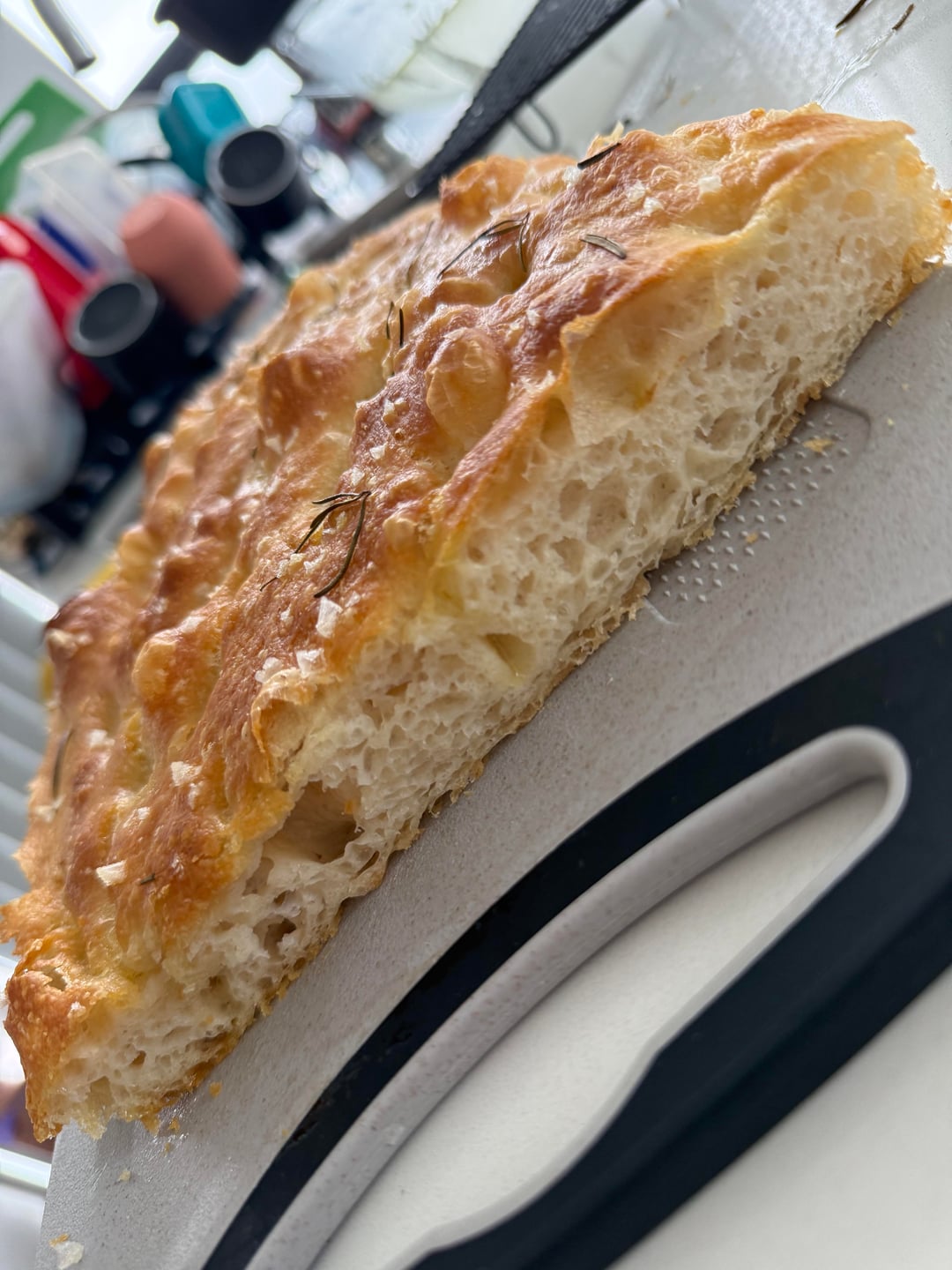 512g bread flour, 12g salt, one sachet of yeast activated in 2C Luke warm water, and olive oil (tbh I just went with my gut feeling on this one). Mixed it all up and chilled for 24hrs. Proofed again for 3.5hrs before baking.
