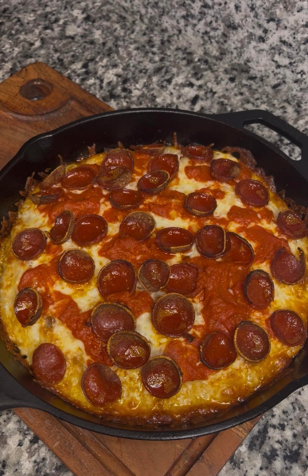 Using cast iron has been a game changer for me and making pizza in my home oven. Thought I needed a pizza steel or stone and this is all I’ve ever needed. 70% hydration dough, 3 day cold ferment, and low moisture skim mozzarella