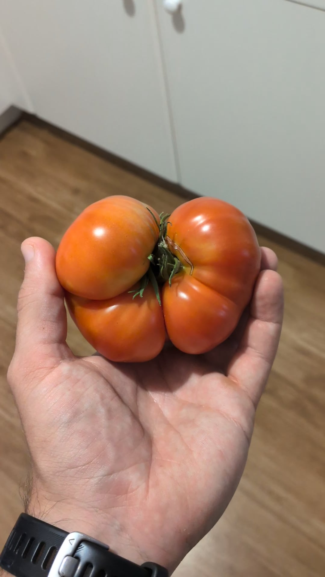 feldoneq2wire 2 weeks ago This is the result of 3-5 blooms which grew together and gave you a larger tomato. It will taste fine, but there may be tough corky bits where the tomatoes zippered together.