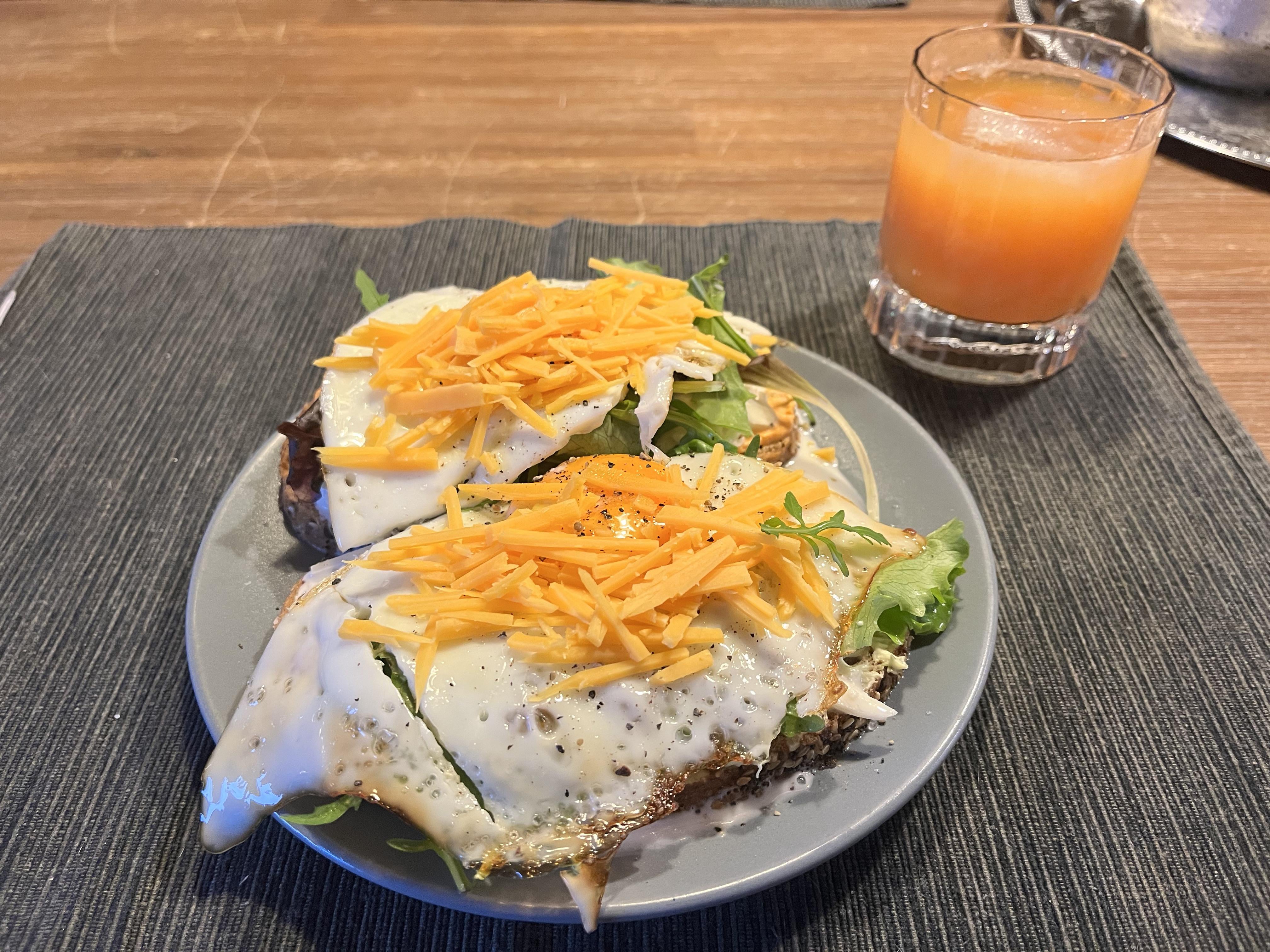 For those who don’t know, it‘s usually a slice of bread with butter, ham, a fried egg and pickles.
