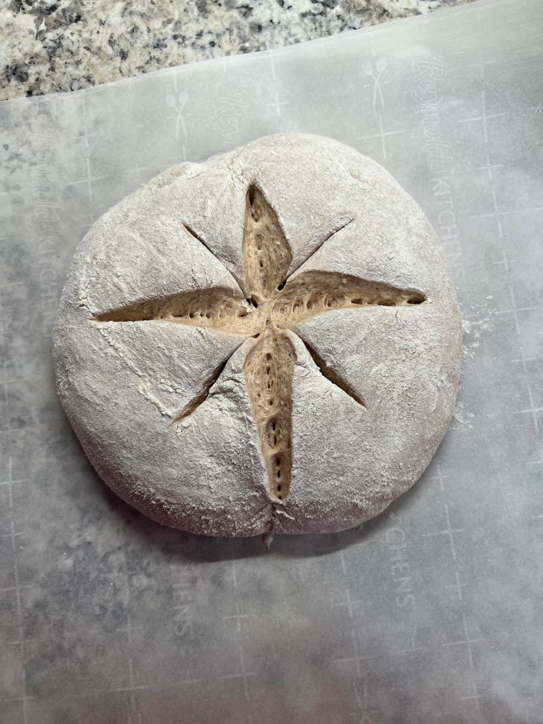 I watched this girl on reels making beautiful flower loaves. She scored halfway through baking to get the smallest details