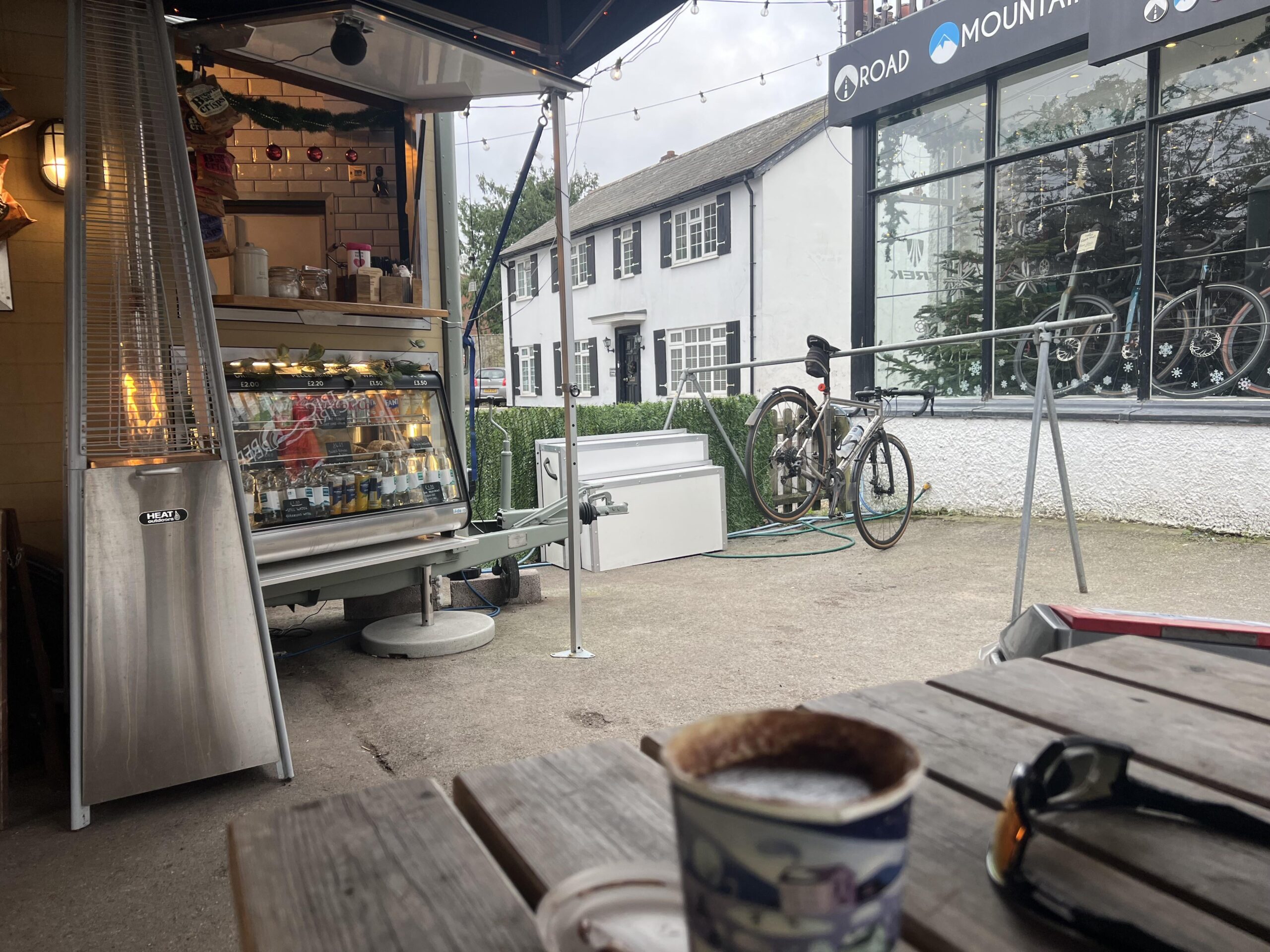 The Absent Pony, Brockenhurst. A converted horse box trailer outside a bike shop, great coffee, cakes and toasties.by iledoffard Dining and Cooking