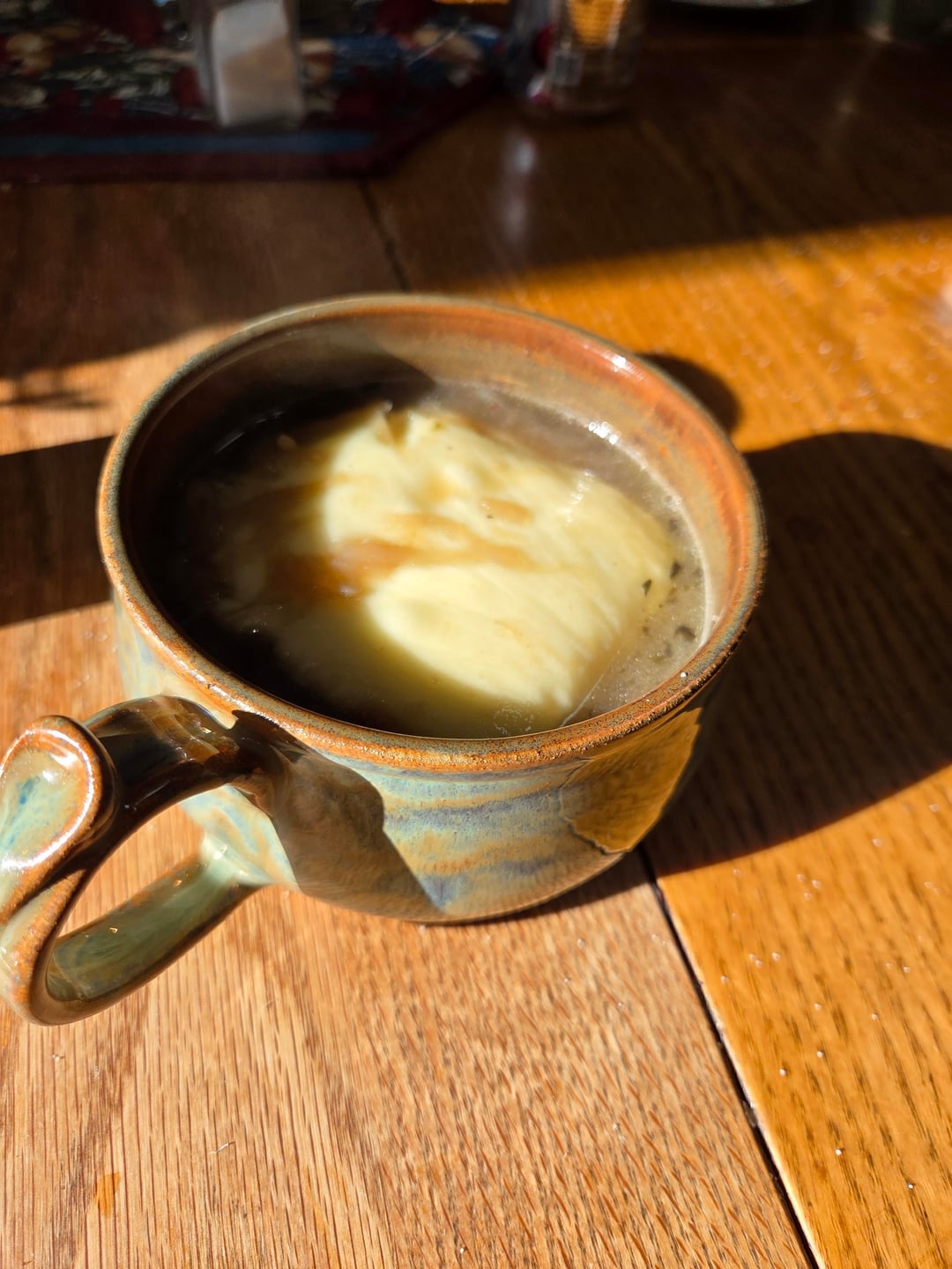 French onion soup from the serious eats website. Cheated on the finish. Put bread an cheese in the toaster oven then slid on to the soup https://www.seriouseats.com/french-onion-soup-recipe