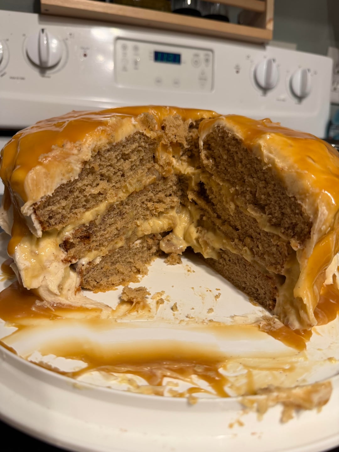 My wife asked me for a banana cake, so I made a Salted Caramel Banana Pudding Cake!