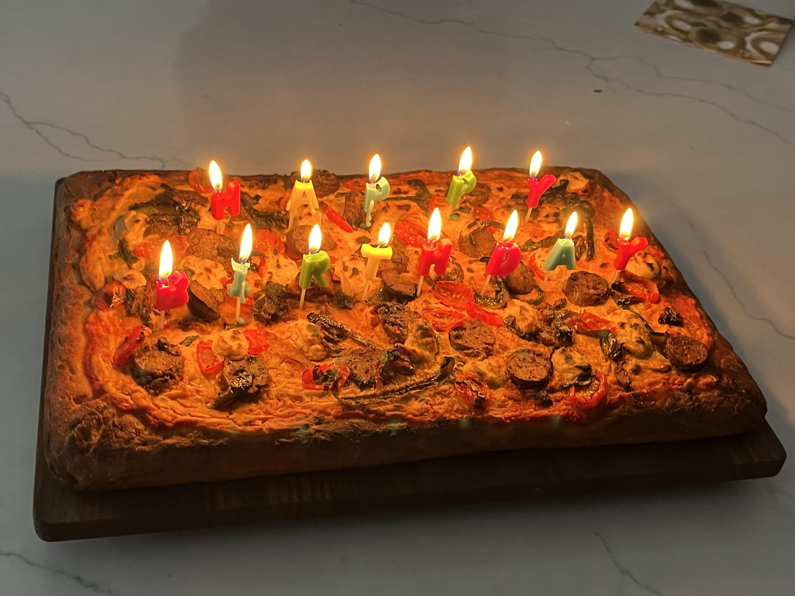 A birthday pizza with candles… thats a first! But I like it a lot👌