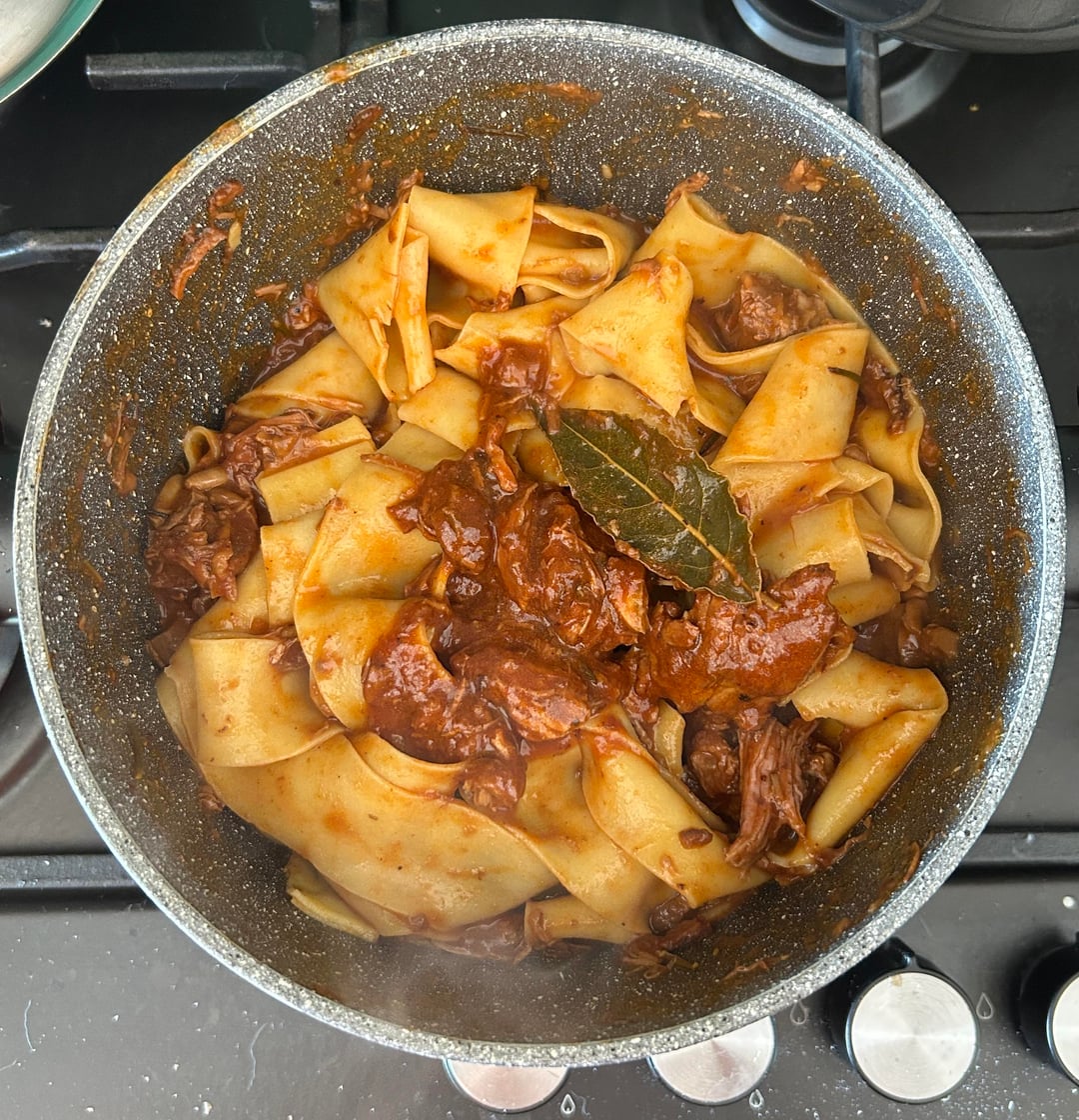 I served it with pappardelle, but also ravioli are a recommended choice.