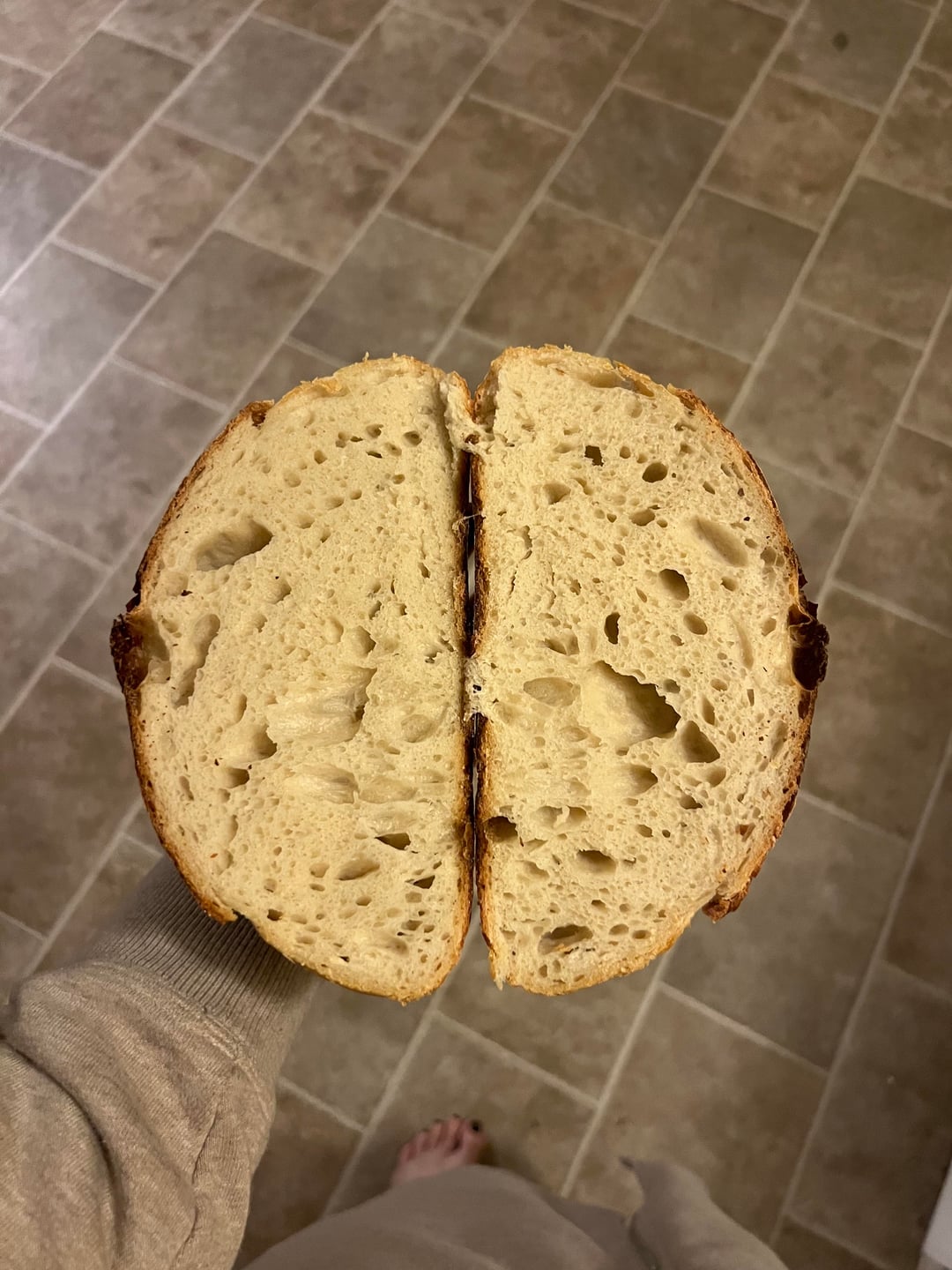 eclecticaesthetic1 1 day ago That second picture is so nice. Great crumb. Why is it golden? Did you use Khourasan wheat?