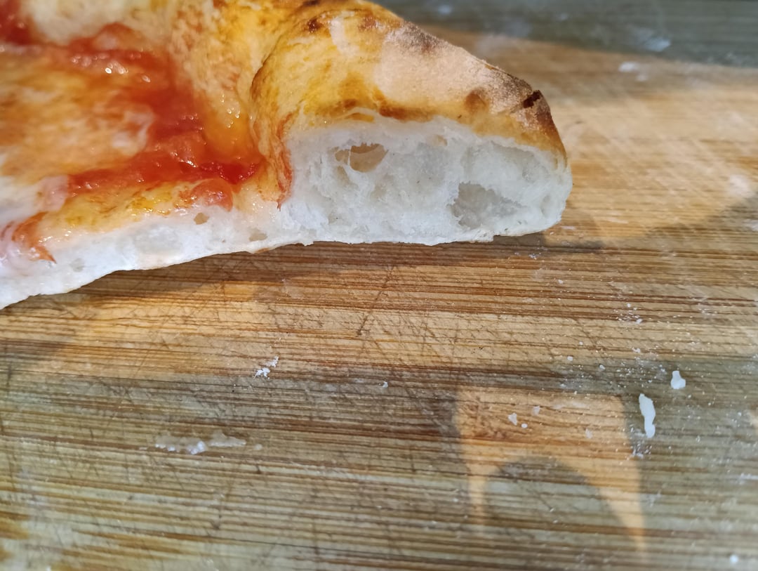 Note that this dough was made with normal bread flour since that is what I had on hand. Fermentation was around 12 hours for the poolish (in fridge) and around 3 hours as a dough at room temp. Pizza was baked in one go with all toppings (Classic Margherita) at once without baking paper (directly on the plate).