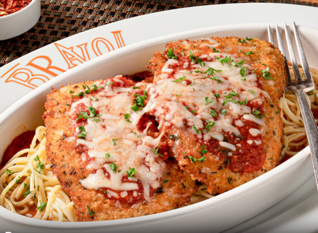 Bravo! Italian Kitchen is a small Midwest chain with 16 locations and is another favorite of Chef Dennis. ”At Bravo! Italian Kitchen, the chicken is well‑seasoned before it’s breaded, so every bite has great flavor,” he says. “The sauce and cheese melt together nicely, giving you that classic chicken Parmesan taste without being too rich or messy. Served with pasta or vegetables, it’s a solid, simple dish that hits all the right notes. Comforting, balanced, and easy to enjoy.”