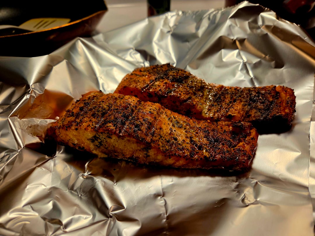 I’ve been using a cedar plank for salmon, about 15 minutes and it comes out perfect every time. I use a little teriyaki sauce and lightly coat with a mayo- mustard topping. Grill a a temper that gets the top golden brown.