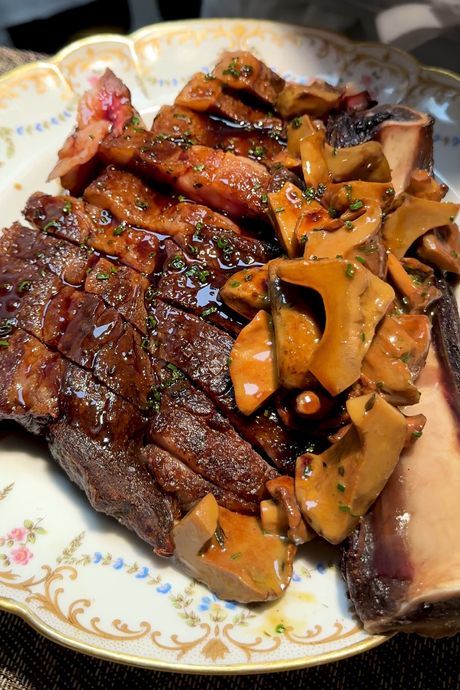 Duchêne’s cooking, and Le May’s wines, are unapologetically French classic in all its statin-requiring glory. The Age of Ozempic has no purchase here. Foie gras abounds — whether encrusted as pâté en croûte, served cold as a slice of terrine, hugging an unblinking eye of artichoke, or making up the bedding beneath a perfectly rare platter of squab — and a regular côte de boeuf weighs in at around three pounds, for a Louis XIV–ish $350. (Fries are included.) Even dishes more country than court are dressed up. A dessert of cherry clafoutis, must be ordered, like a soufflé, at the outset of the meal. I wondered aloud whether Duchêne left her cherries unpitted; French cooking lore has it that the cherry stones lend a bitter-almond flavor to the finished pudding. “My grandmother would have,” said one of our servers, who, like each that I encountered, was a Frenchman with accent intact, “but this is a restaurant.”