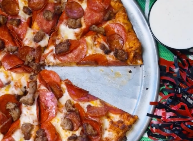 Donatos Pizza has a Serious Meat option that includes sausage, shaved ham, pepperoni, smoked bacon, ground beef, smoked provolone cheese and romano. “Donatos. I’m not sure how spread out they are in the US but we have a few in Columbus, OH and there is one in Ashland, KY, which is a lot closer to me than Columbus but it’s still very good,” one commenter said on Reddit. Another followed up, saying “Donato’s mariachi beef or founder’s favorite (pepperoni, sausage, ham, banana peppers) for me, please!”