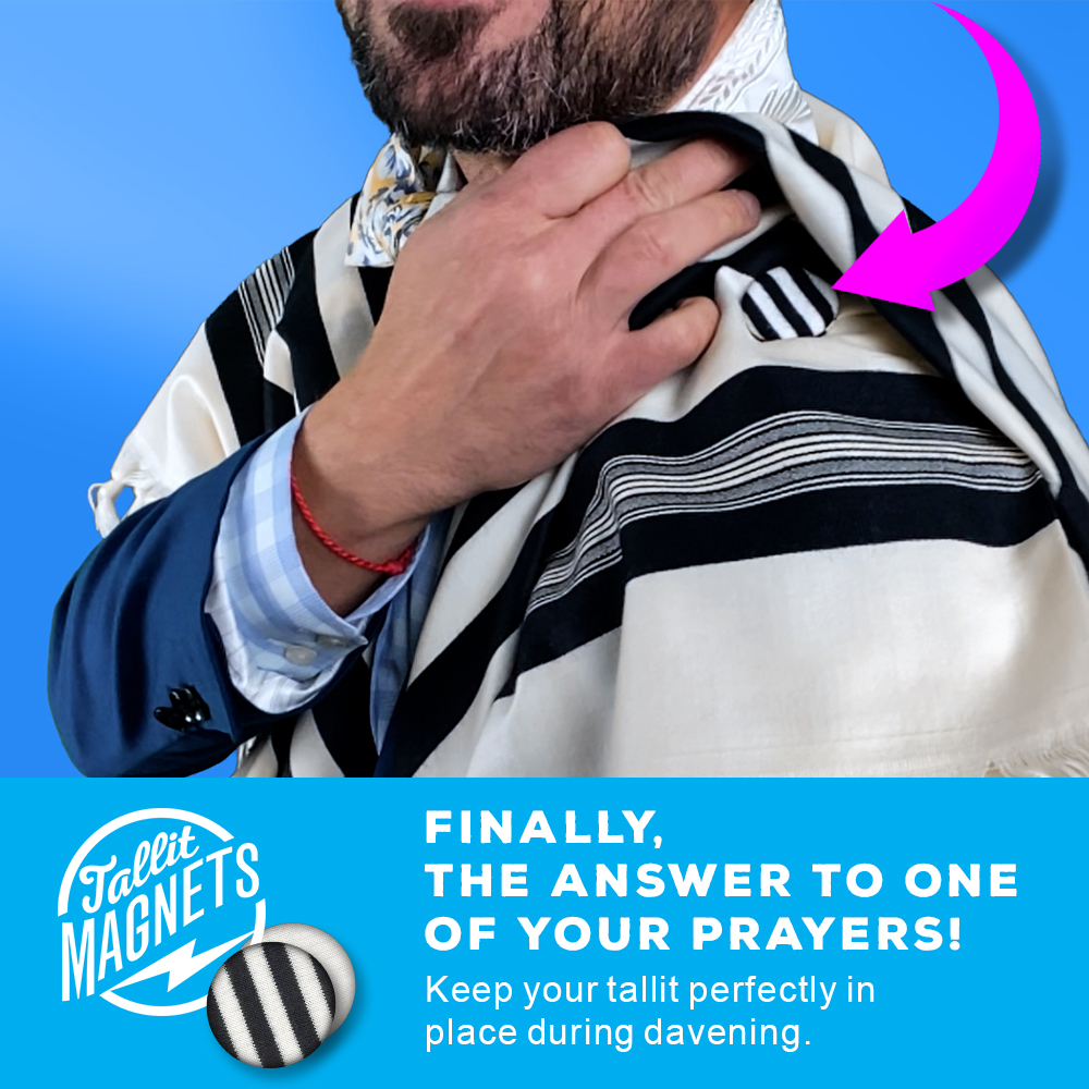 Every so often, a Jewish invention comes along that makes you wonder how it didn’t exist already. This year’s breakout product — and one that will quickly become a staple in tallit bags across communities — is Tallit Magnets, a beautifully simple, brilliantly designed way to keep your tallit exactly where it belongs. For many tallit-wearers, it feels like one of their prayers has finally been answered.