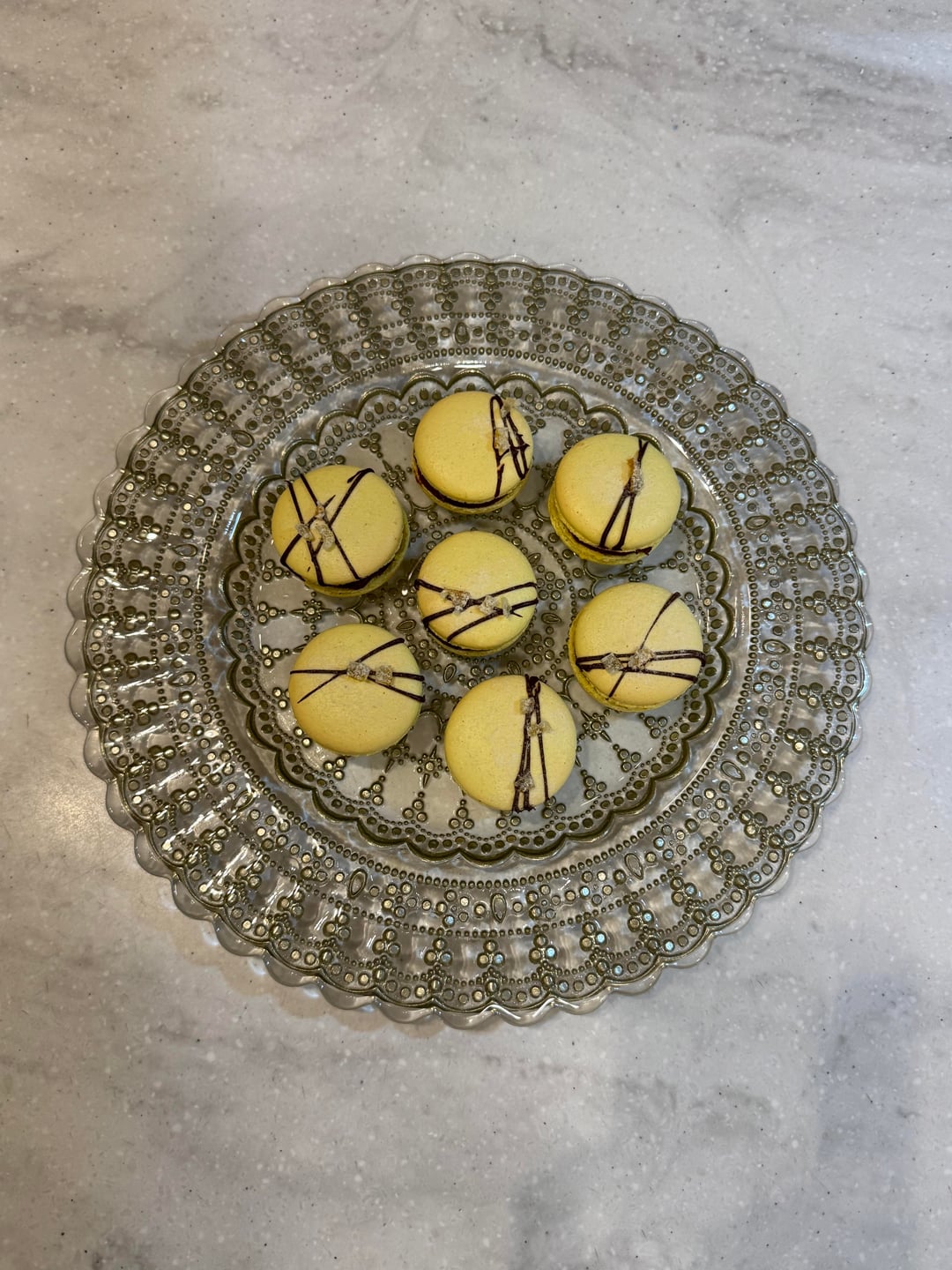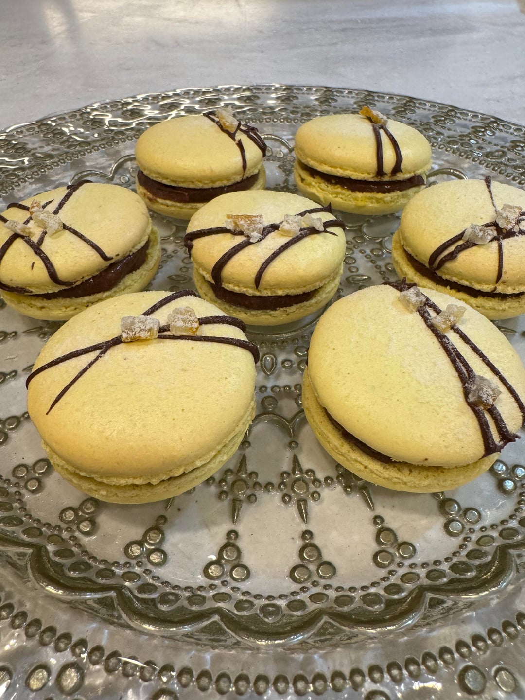 The ganache features chocolate blended with yuzu peel, powder, and a touch of extract. I also sprinkled finely chopped yuzu peel onto the macaron shells. Chocolate and yuzu are a perfect match!